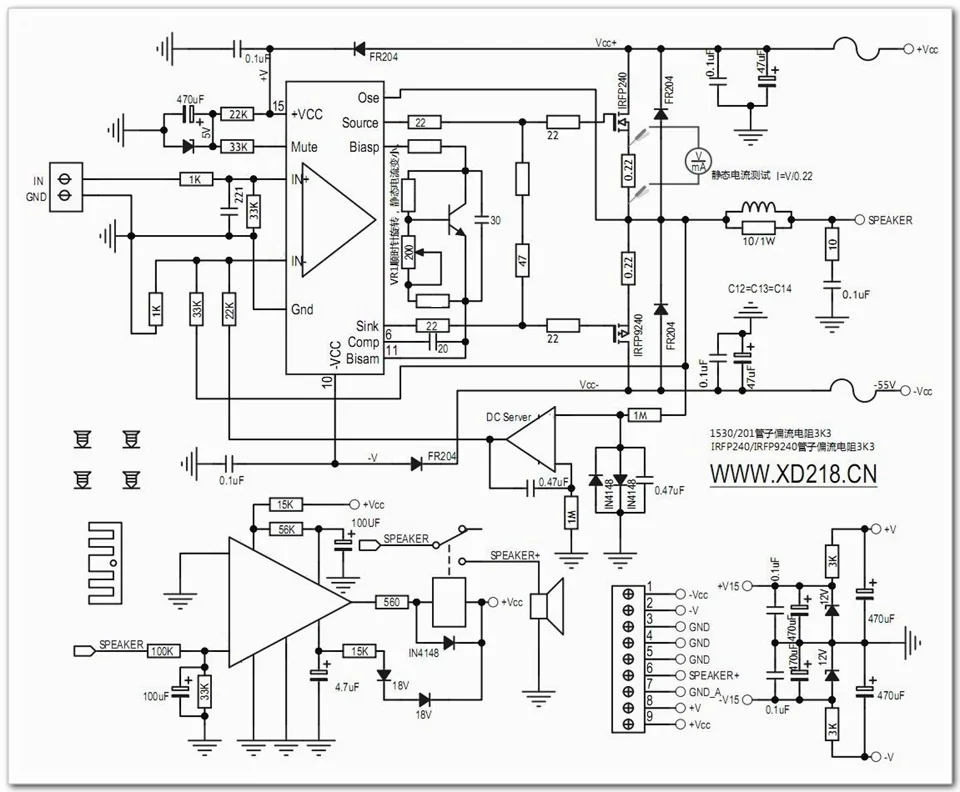 На этапе вывода тока используется пара транзисторов с полевым эффектом IRFP240/IRFP9240
