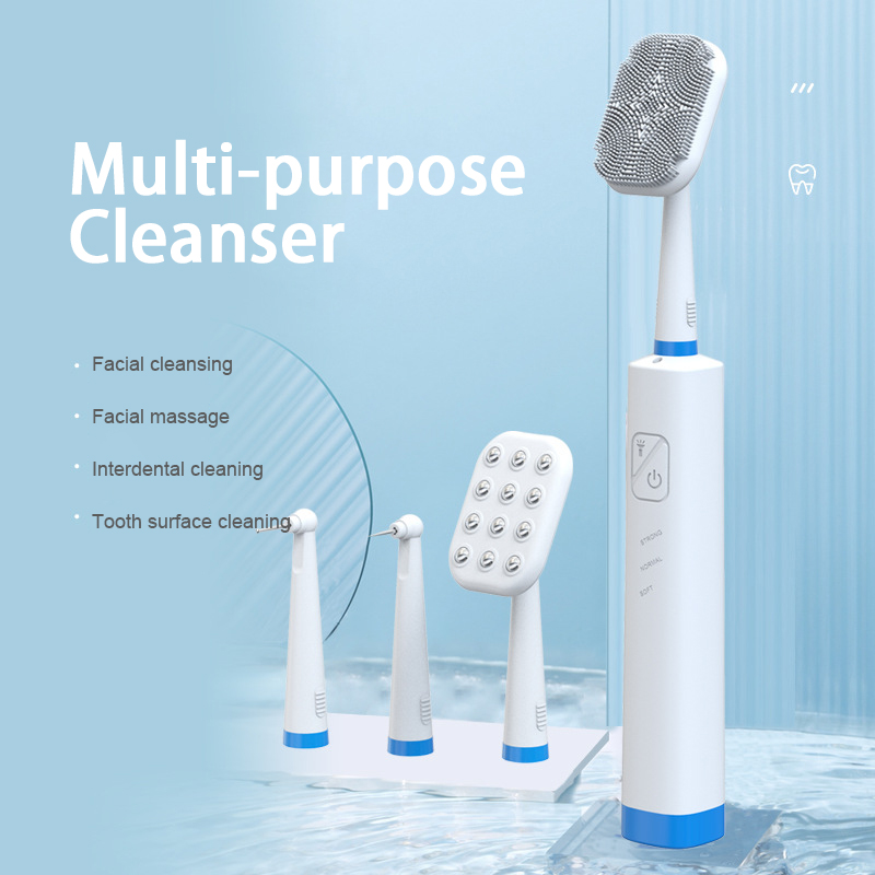 5.Упаковочный лист:1 * инструмент, 1 * Сферический массажер, 1 * наконечник для чистки зубов, 1 * плоская головка для чистки зубов, 1 * силиконовая головка для лица.