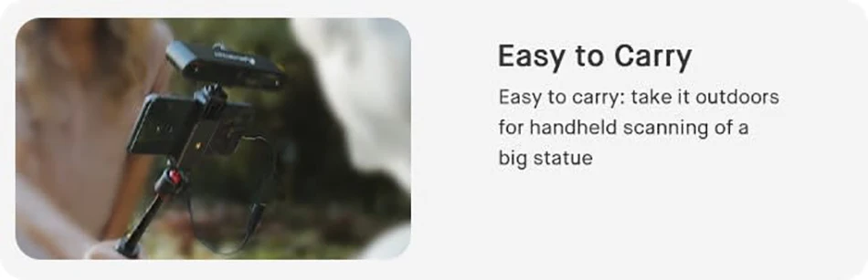 Алгоритм поп является эффективным и легким. Встроенный чип может завершить большую часть работы по расчету и сопоставлению, поэтому 3d-сканер Revopoint POP не требует сильного процессора или графического процессора от подключенного 3d-сканера PCPhonePadRevopoint POP не больше смартфон, вес 200 г, Которые вы можете переносить в любое место для памятников на открытом воздухе и в большинство внутренних музея. Вы можете сделать очень специальное «3D фото» с поп-сканером и вернуть его в 3D печать дубликат любого объекта, который вам нравится.
