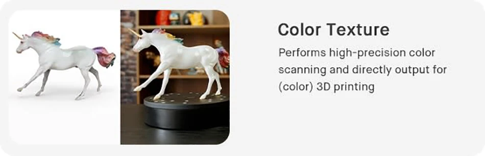Revopoint поп 3D сканер оснащен защитой бинокулярный структурированных светильник, которая гарантирует, что полученные 3D данных облака точек отличает высокая точность. Самый высокий однокадровый точность может достигать 0,3 мм. Это устройство поддерживает как высокоточные, так и текстурные режимы сканирования, что позволяет непосредственно генерировать Яркие 3D модели для цветной 3d-печати. Точность-это одна вещь, на которую вы не хотите идти, потому что точность сканирования напрямую связана с качеством 3D печати. Традиционный потребительский 3D сканер, как правило, жертвует точностью, предлагая пользователям силуэт, который не готов к 3D печати. Revopoint POP создан для изменения курса.