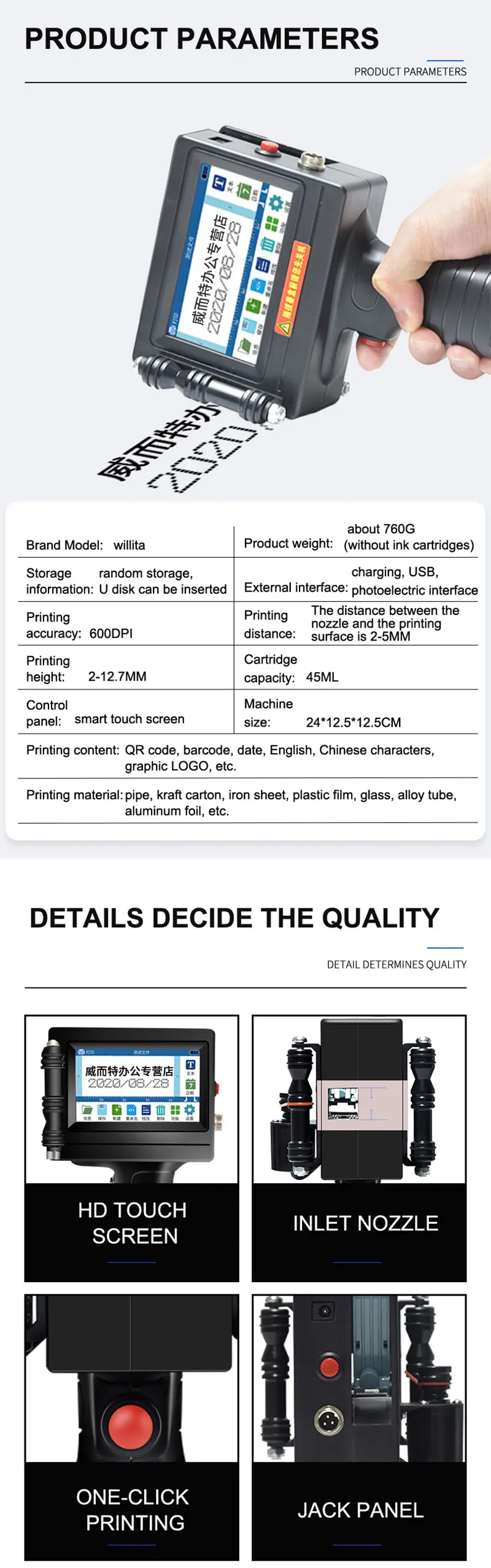 20 языков 12,7 мм ручной термальный струйный интернет-переменный QR штрих-код номер партии логотип Срок годности этикетка струйный принтер
