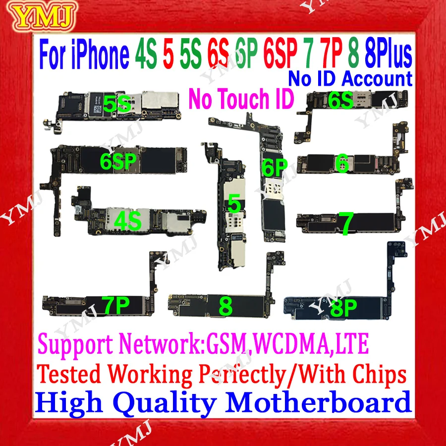 100% Оригинальный Бесплатный icloud для iphone 5 5S 6 Plus 6s Plus 7 plus 8 Plus материнская плата 16 ГБ 32 ГБ 64 Гб без сенсорного ID логическая плата тест хорошая работа