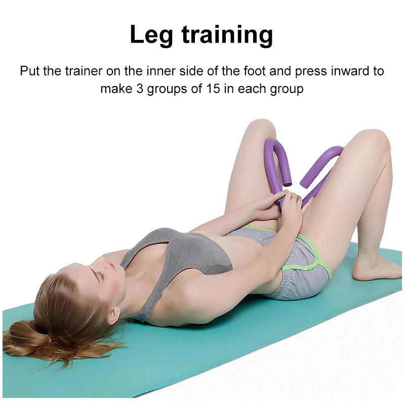 Лежать на спине и расслабляться. Ваши ноги немного отделены. Зажмите тренажер между коленями. Закройте колени до внутренней стороны. Удерживая в течение 5 секунд, слегка расслабьтесь, вернитесь в положение, а затем затяните внутрь и повторите действие