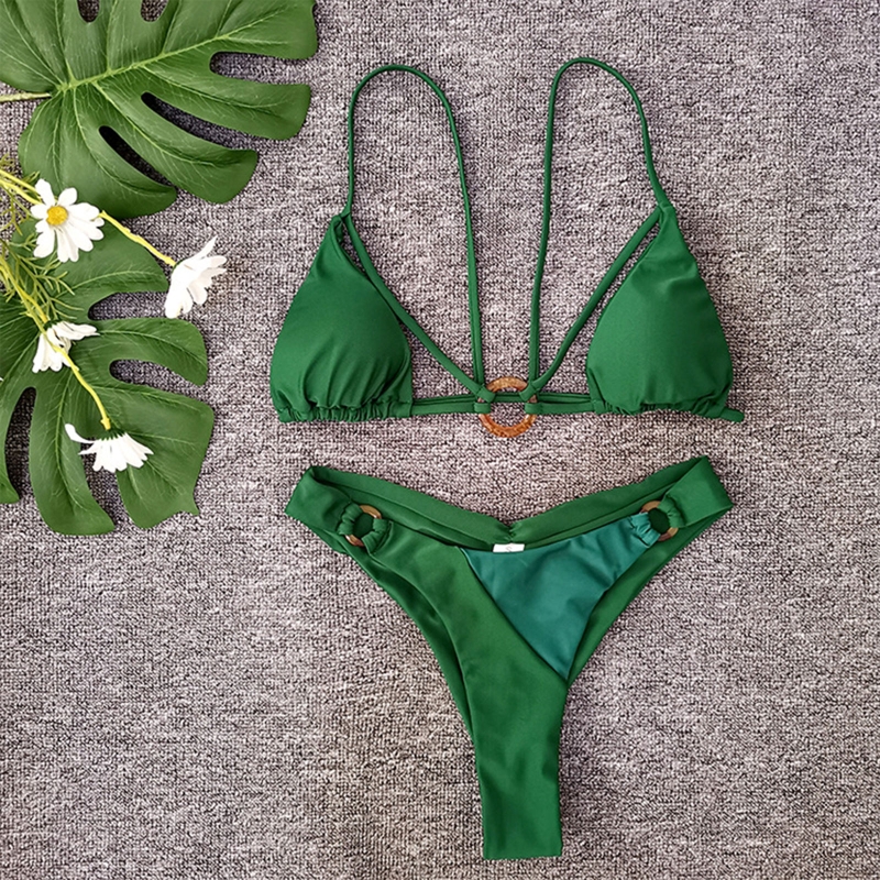 Сексуальная Женская пляжная одежда бикини сплошной цвет Сплит мягкая сумка купальник-бикини треугольной формы женский низкая талия бикини костюм купальник G99D