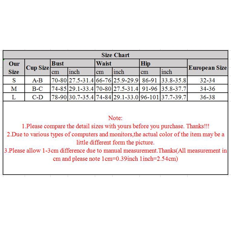 Размеры: S чашки Размеры: A-B Обхват груди: 70-80 см (27,5-31,4 дюймов); Объем талии: 66-76 см (25,9-29,9 дюйма) обхват бедер: 86-91 см (33,8-35,8 дюйма) европейский размер: 32-34