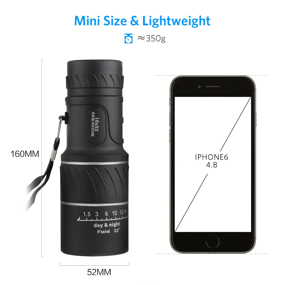 Размер монокуляра: 160*52 мм