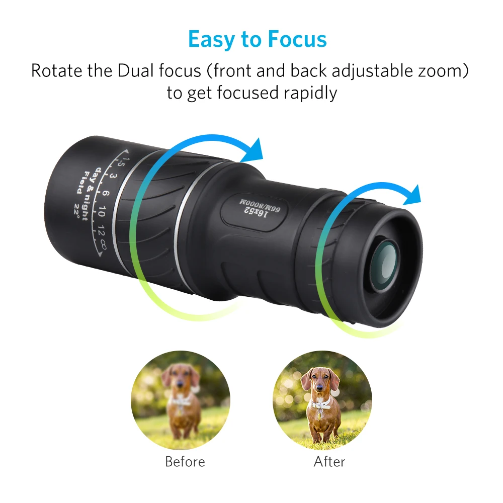 Видеть предметы 16X ближе и получить более четкую и яркую передачу с УФ-фильтр 52 мм с объективом и 18,5 мм линзы Рыбий глаз.