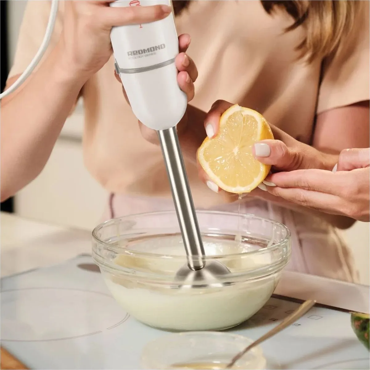 Погружной блендер REDMOND RHB-2967 поможет значительно упростить подготовку ингредиентов для самых разных блюд и напитков. Блендер очень компактный: возьмите его в поездку или на дачу, чтобы с легкостью готовить любимые супы и смузи даже вне дома.