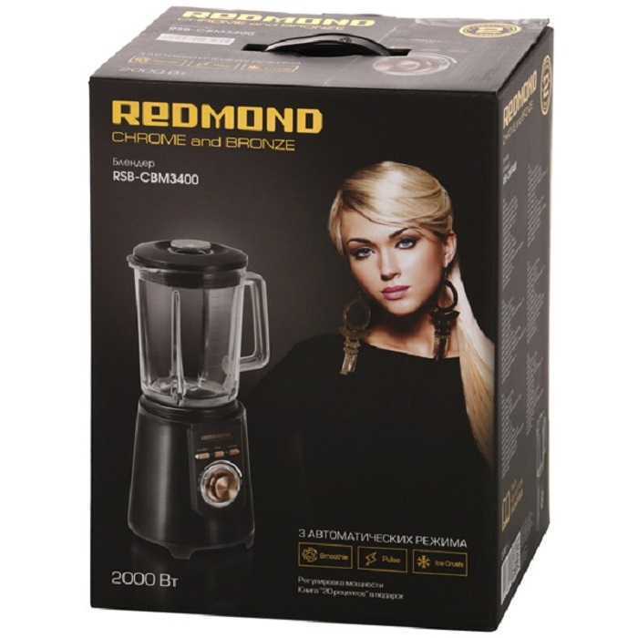 Модель RSB-CBM3400 включена в лимитированную серию техники премиум класса Chrome & Bronze. Устройство выполнено в эксклюзивном дизайне: сочетание насыщенного черного цвета и роскошных бронзовых оттенков сделает блендер изысканным аксессуаром в интерьере вашей кухни.