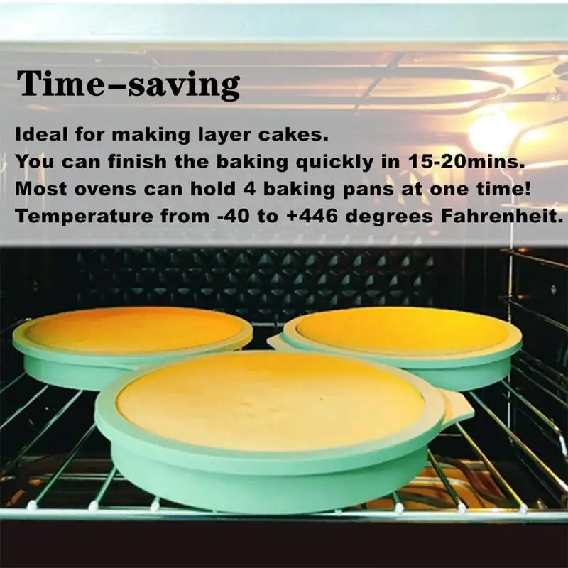 Внутренний диаметр радужного пирога идеально подходит для изготовления слойных пирожных. Большинство печей могут держать 4 радужных формы для торта одновременно, поэтому вы можете быстро закончить выпечку за 15-20 минут, значительно сокращая время выпечки.