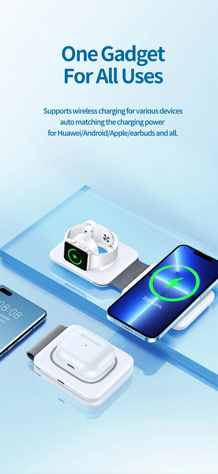 Поддерживает беспроводную зарядку для различных устройств, автоматическое соответствие зарядному питанию для Huawei/Android/Apple/earbuds и всех