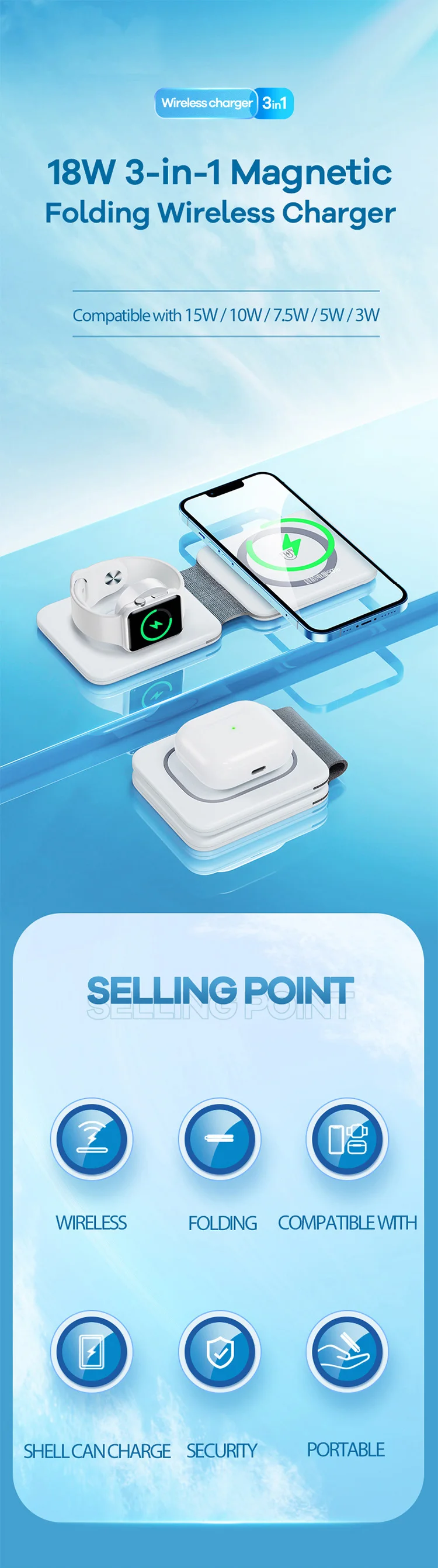 3 January 2023Show moreOpen 3 reviewsDescription18 Вт 3-в-1 магнитный складной Беспроводной Зарядное устройство