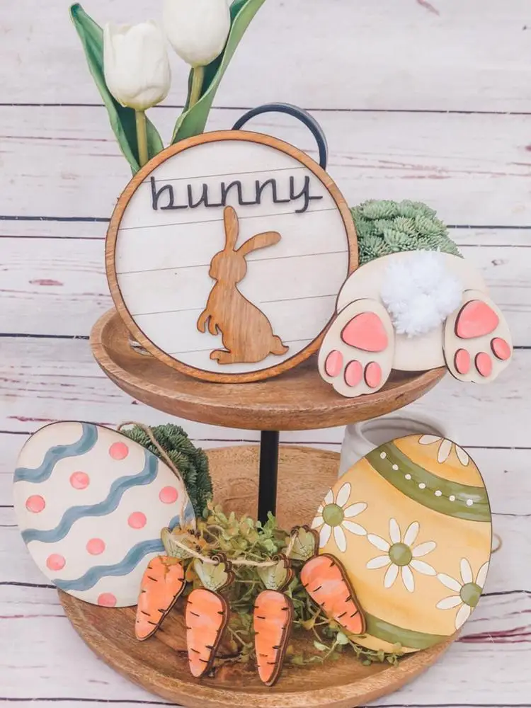 4. Идеи весеннего украшения: многоярусные Декорации для подноса в фермерском доме могут быть объединены с банками, кружками, гномами, зеленью, цветами, пасхальными яйцами, деревянные гирлянды из бисера или любые другие штабелируемые предметы, а также отличный вариант подарка.
