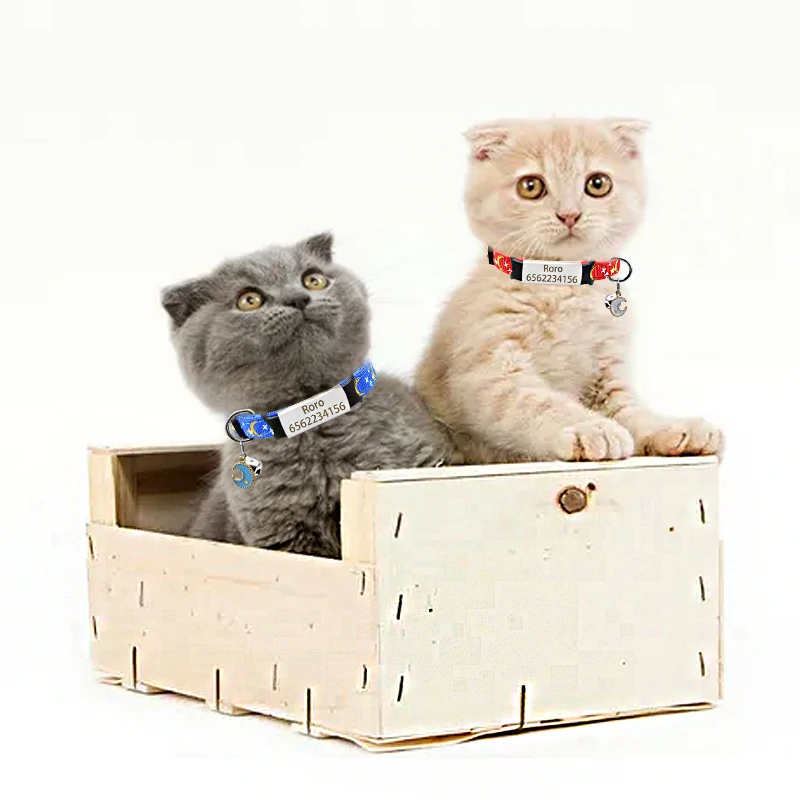 Пользовательская табличка с именным котом, ошейник с колокольчиком, индивидуальная идентификационная бирка, безопасная регулируемая звезда, луна, ошейник с котом, ошейник для питомца, котенка, кошки