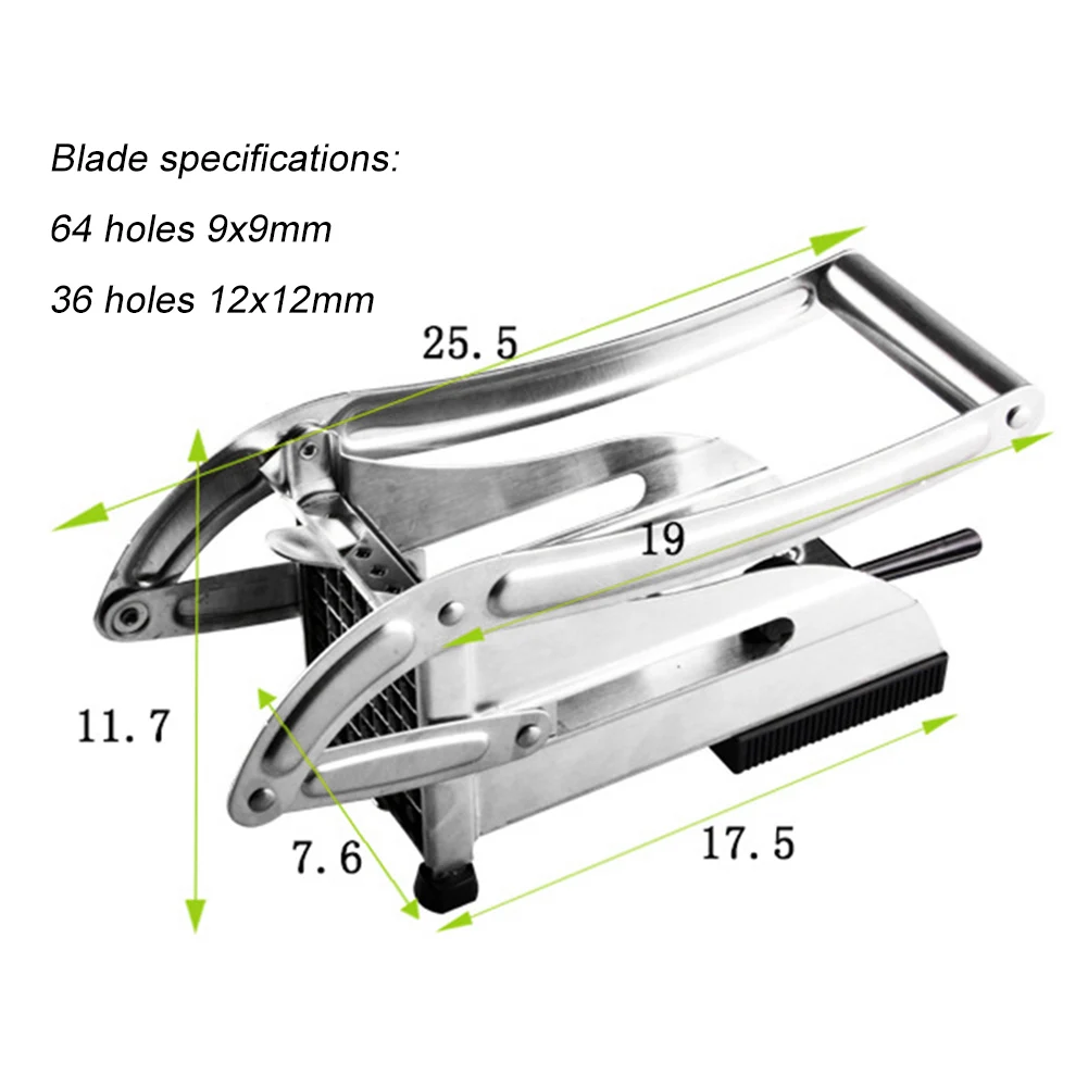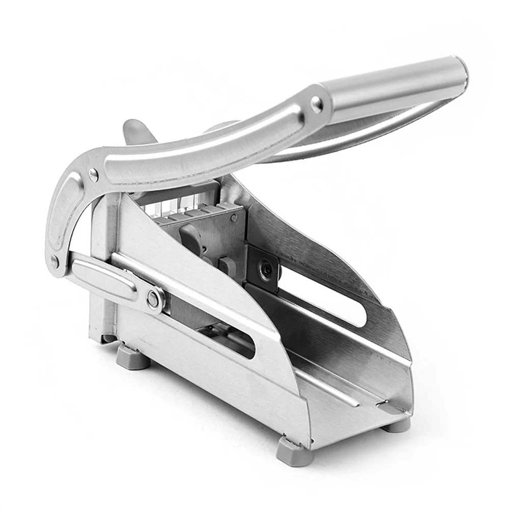 При использовании картофельной резки, пожалуйста, нарежьте картофель, фрукты или овощи на две с половиной половинки, с плоскостью, обращенной вниз. Сила нажима должна быть ровной, а не взрывоопасной. Чрезмерная сила легко раздавит лезвие.