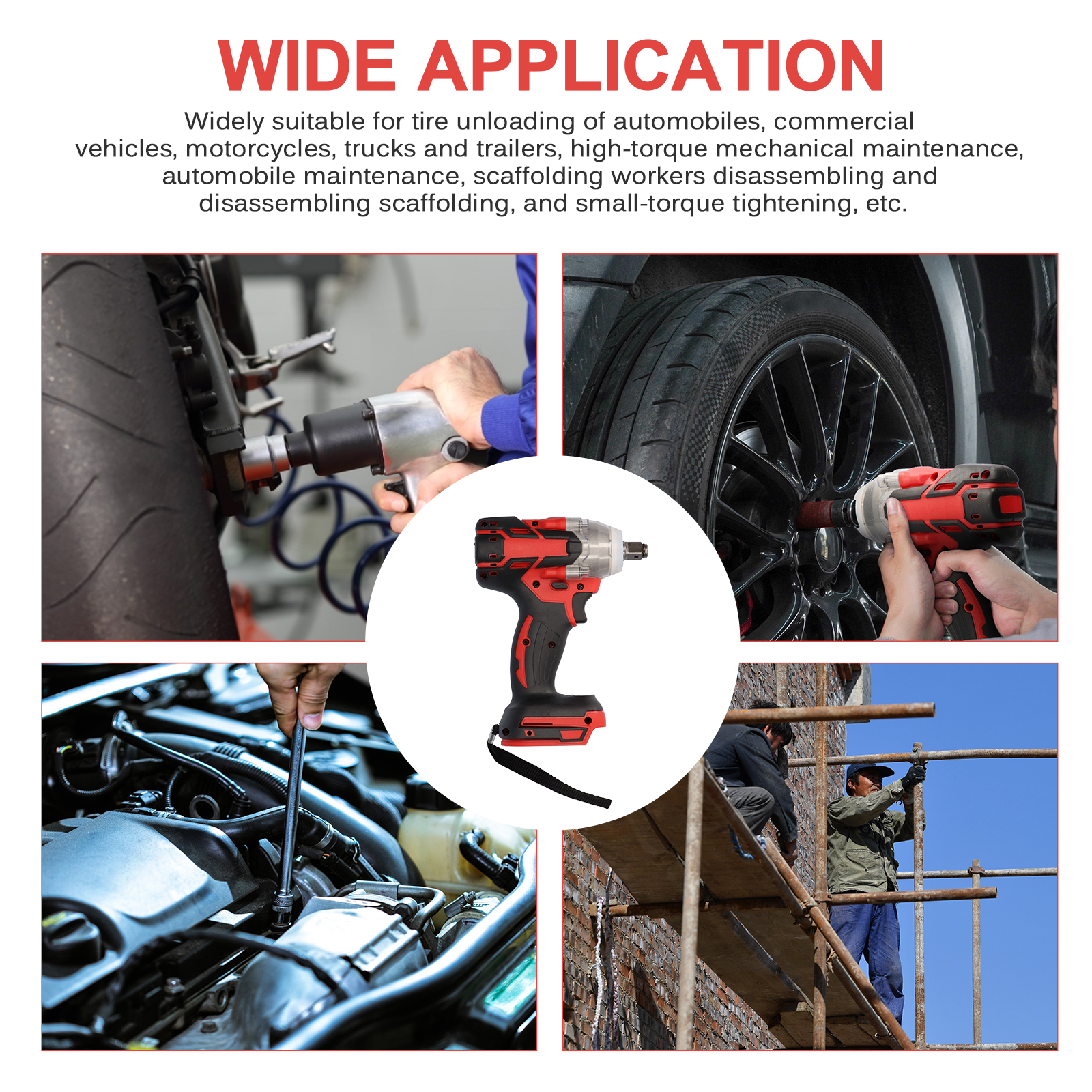Широко подходит для разгрузки шин автомобилей, коммерческих автомобилей, мотоциклов, грузовиков и прицепов, механического обслуживания с высоким крутящим моментом, технического обслуживания автомобилей, строительных лесов рабочих демонтажа и демонтажа строительных лесов и затягивания малого крутящего момента, И т. д.