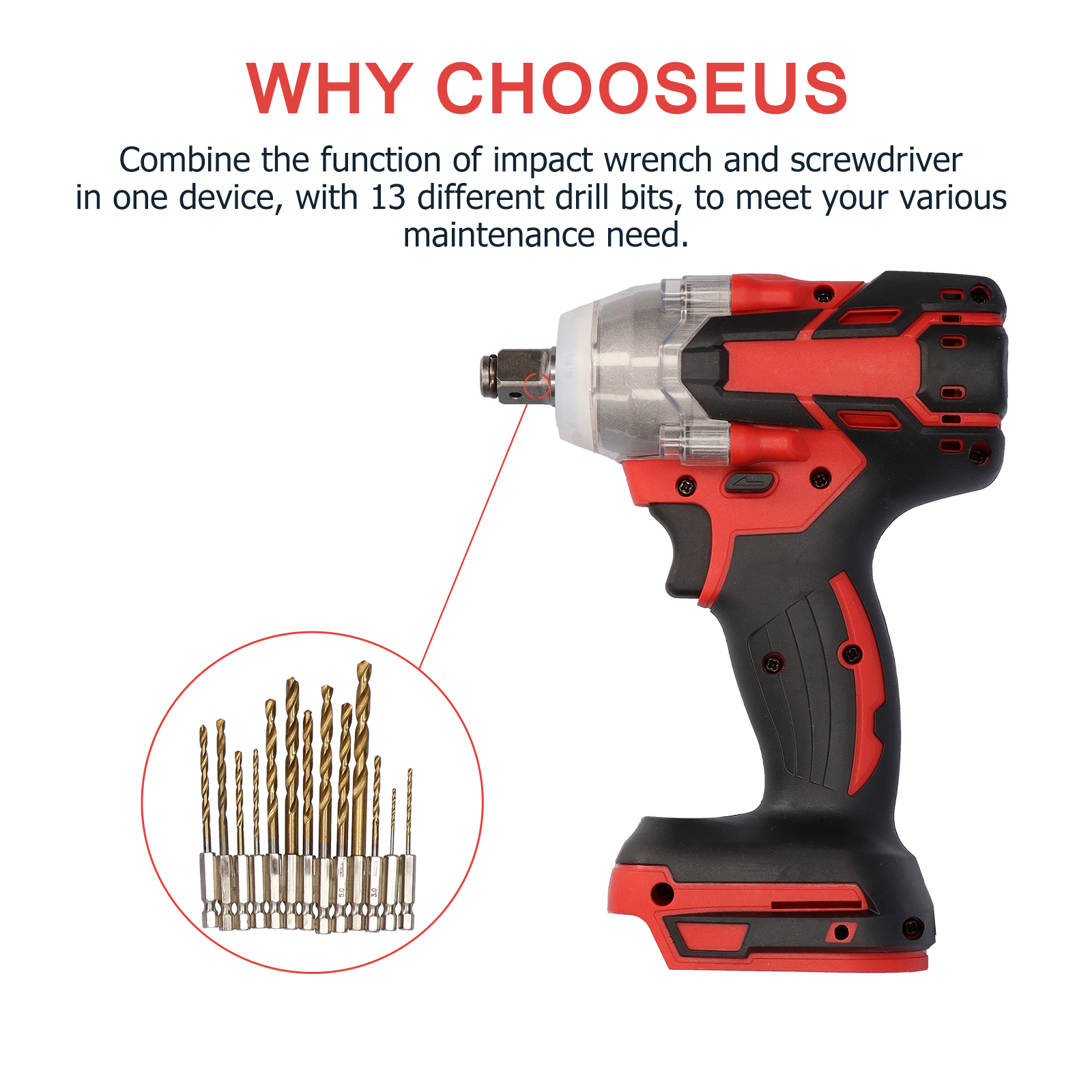 Комбинируйте функцию ударного ключа и отвертки в одном устройстве с 13 различными сверлами, чтобы удовлетворить ваши различные потребности в обслуживании.