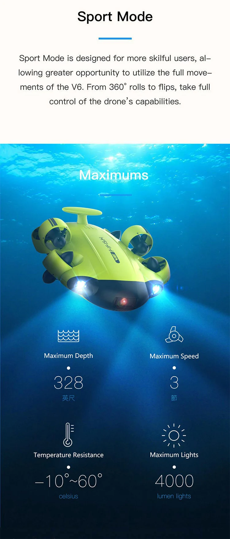 FIFISH V6 подводная Рыбацкая камера Подводный Дрон для телефона 4K UHD с умным пультом дистанционного управления, приложение подводная лодка с камерой