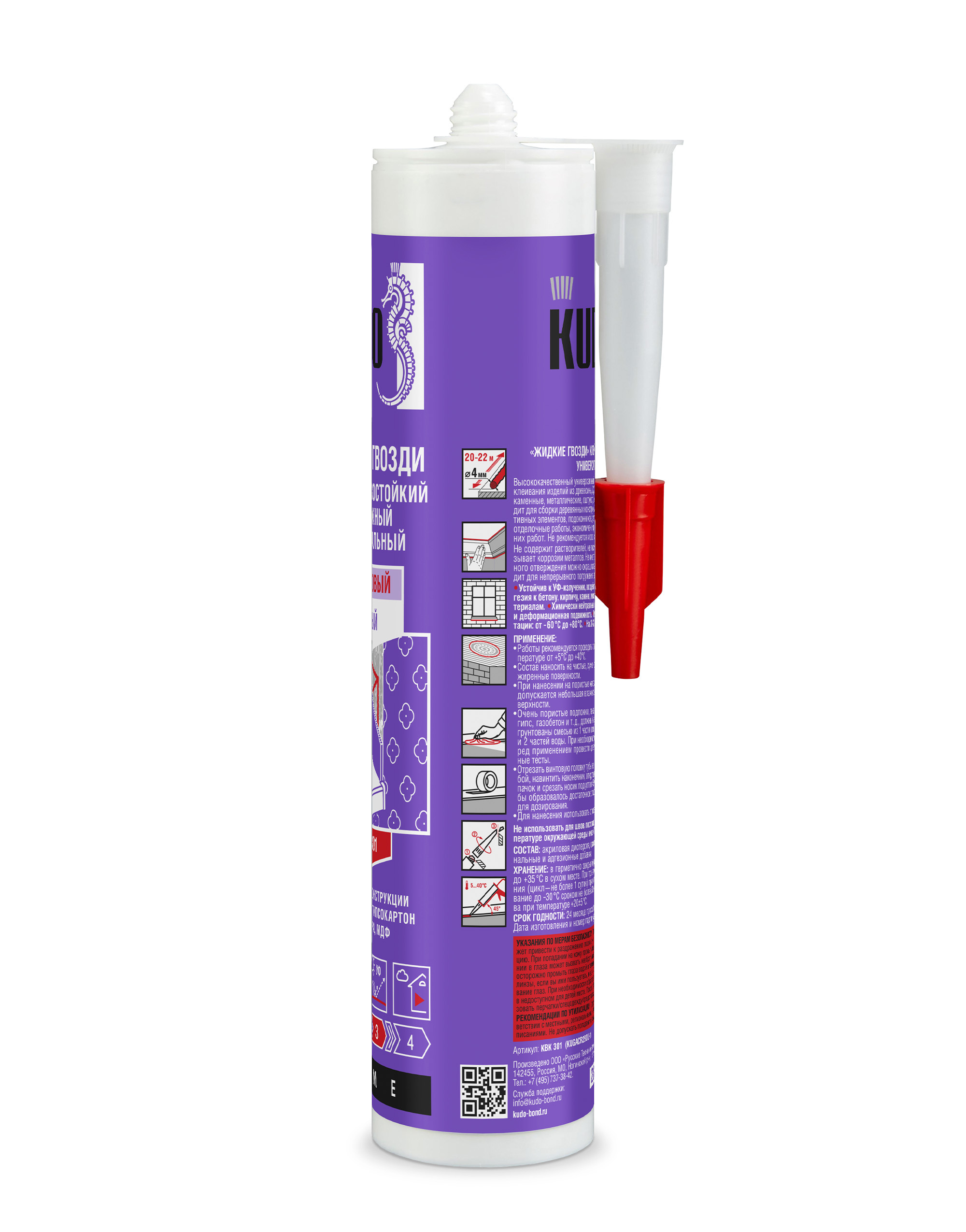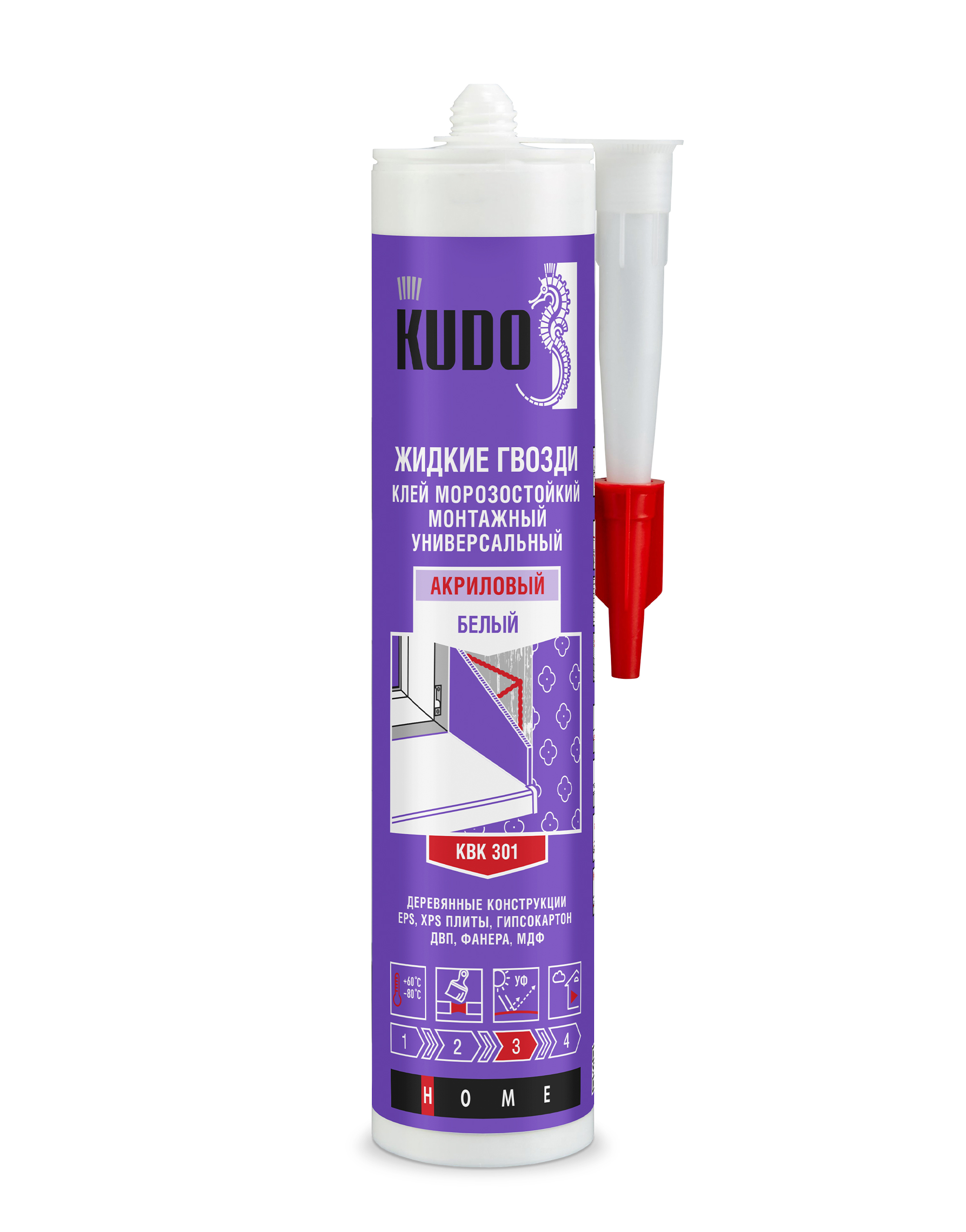 Высококачественный универсальный акриловый клей «жидкие гвозди» KUDO® специально разработан для приклеивания изделий из древесины, ДСП, ДВП, EPS, XPS и UPVC на бетонные, кирпичные, каменные, металлические, оштукатуренные и деревянные поверхности.