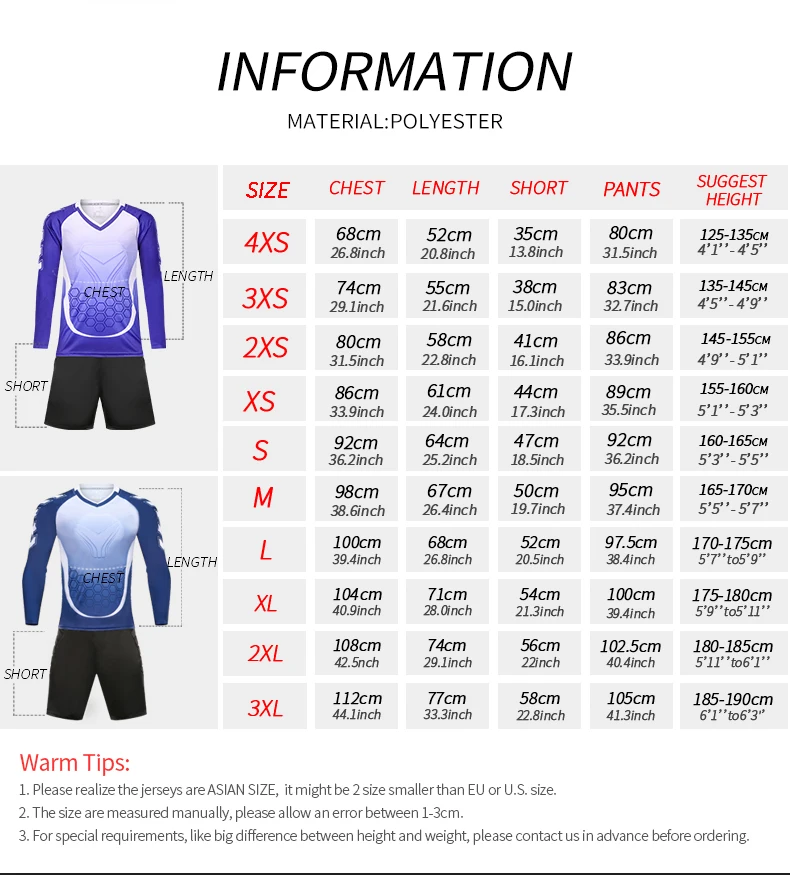 Униформа вратаря-это Азиатский Размер, соответствует европейским и американским размерам.