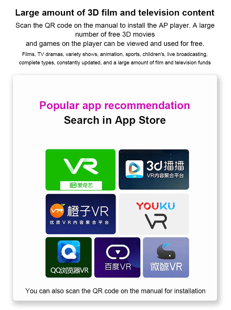 Продукт представляет собой 3d-очки, сочетающие просмотр фильмов и игры в игры, которые могут превратить мобильный телефон в кинотеатр/3D игровой зал.