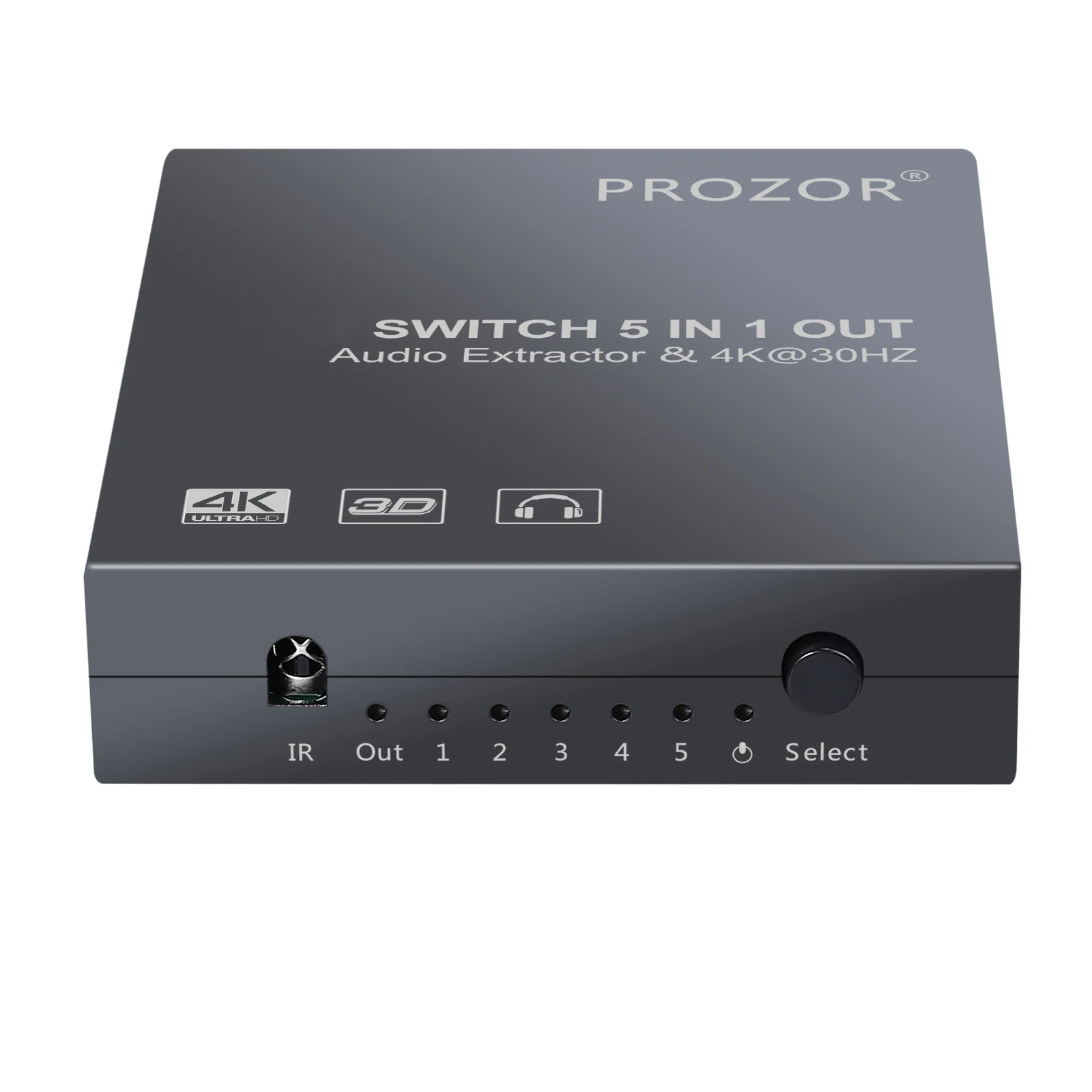 5x1Совместимому с HDMIПереключатель с пультом дистанционного управления экстракторСовместимому с HDMIКоммутаторСовместимому с HDMIАудио конвертер включает ИК пульт дистанционного управления 3 футаСовместимому с HDMI1,4 кабель и 3,5 мм штекер 2 RCA Женский стерео аудио кабель Поддержка 4K 3D