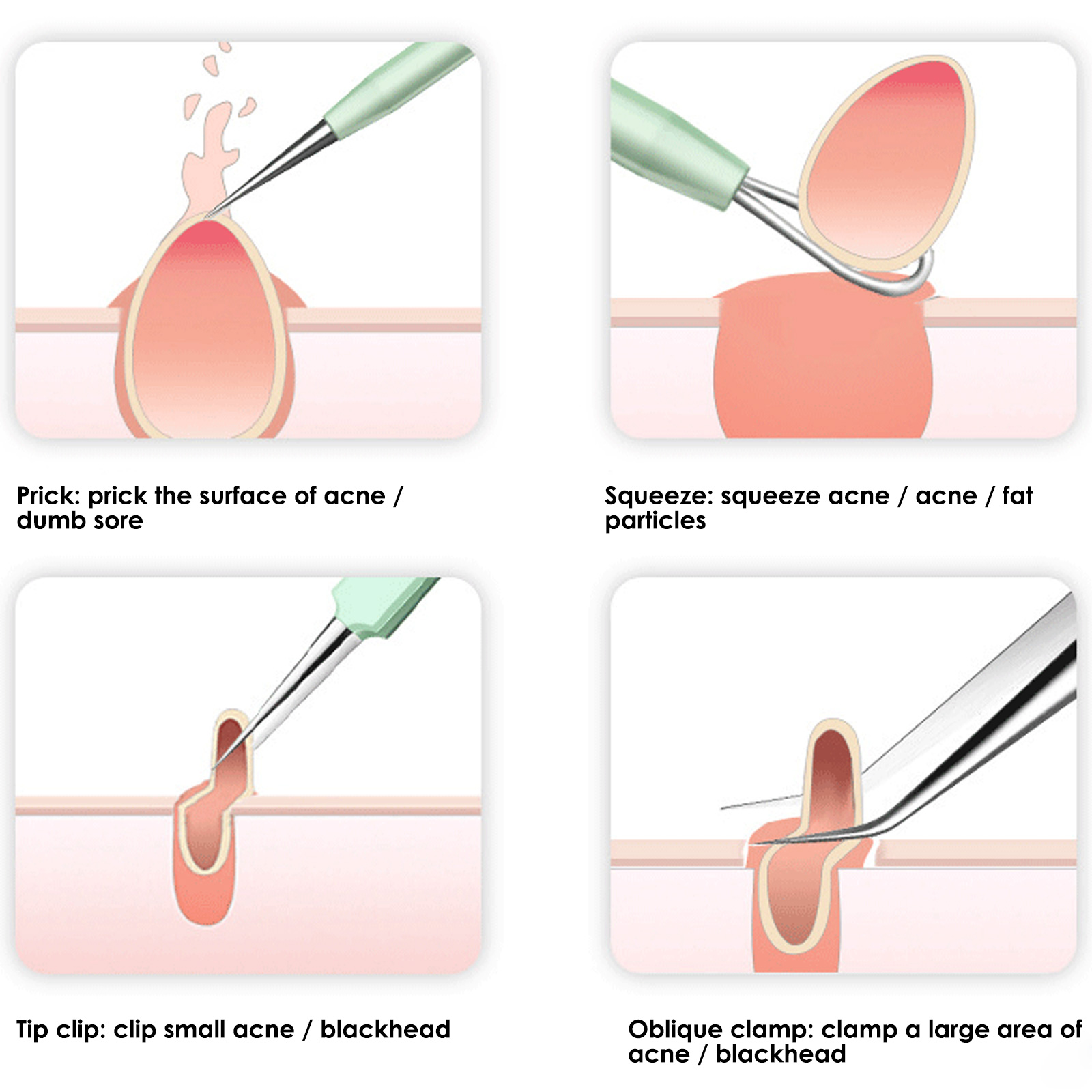 Отлично подходит для выскакивания поломок, прыщей, сдавливания белых головок и удаления черных точек.