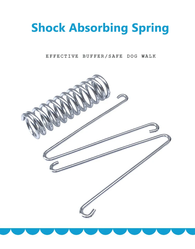 Собачий поводок амортизатор пружины --- целью этого устройства является поглощение силы между собакой и человеком. Добавьте его между поводком и фиксированным соединением, что облегчит резкую остановку вашего питомца. Поставляется с тяжелым зажимом для крепления к имеемому ошейнику собаки и еще одной качественной петлей на конце для подтяжки к вашему поводку