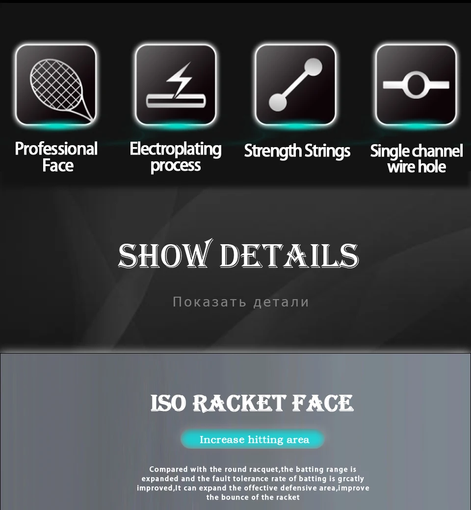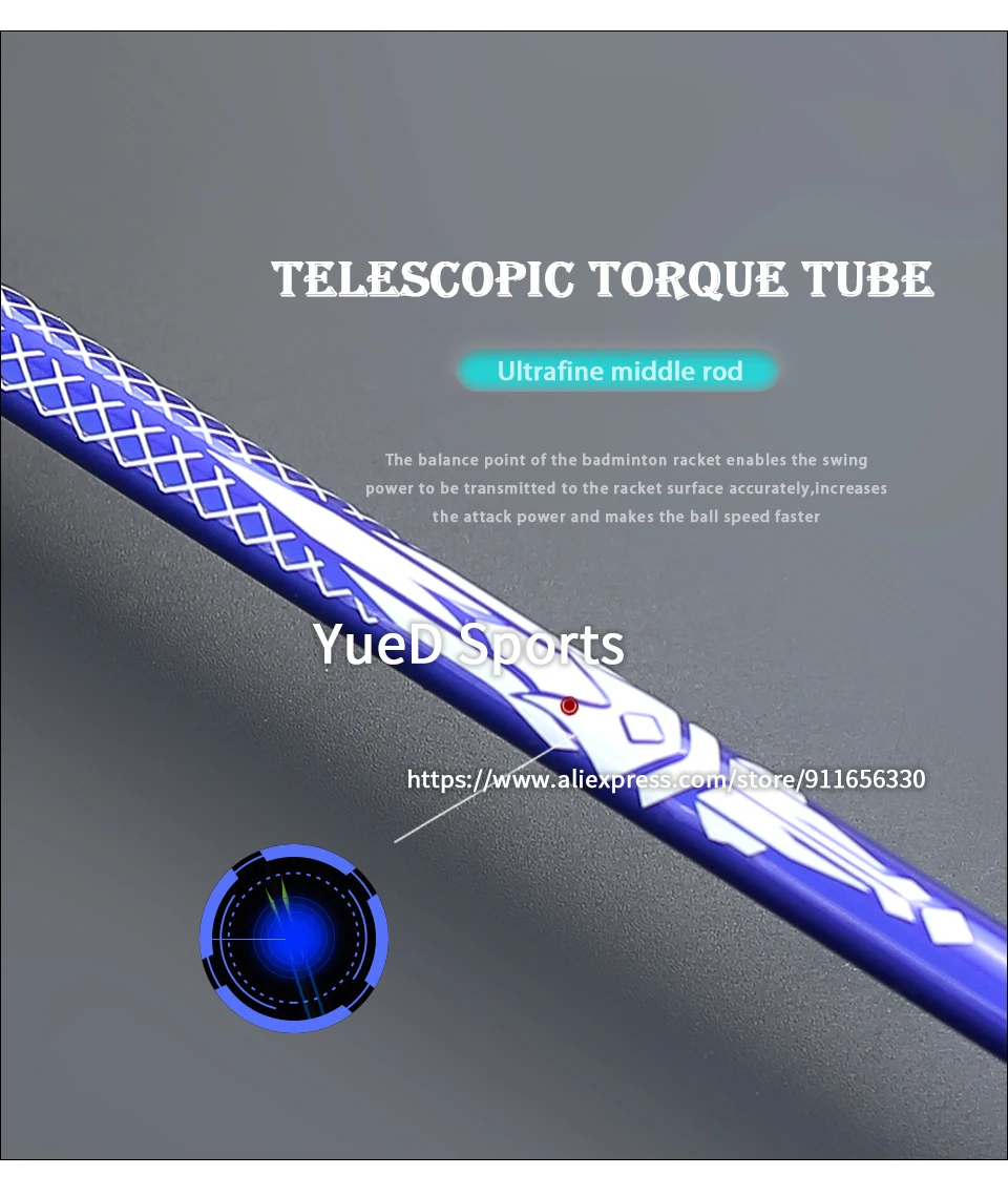 Weight - 4U Net weight only 82-85g without the string & overgrip & plastic film,anyone can control the racket effortless ;CARBON FIBER - he racket more lighter but stronger , so the tension can up to 35LBS,suitable the begining and the profesional player ;BALANCE OF THE RACKET - Racket have the best balance of weight&power,so the racket can easly to break out the power and make the offensive can`t be stop.FREE SERVICE - We can offer the free service of string and the overgrip,so you can play immediately when you get the racket.Gift :
