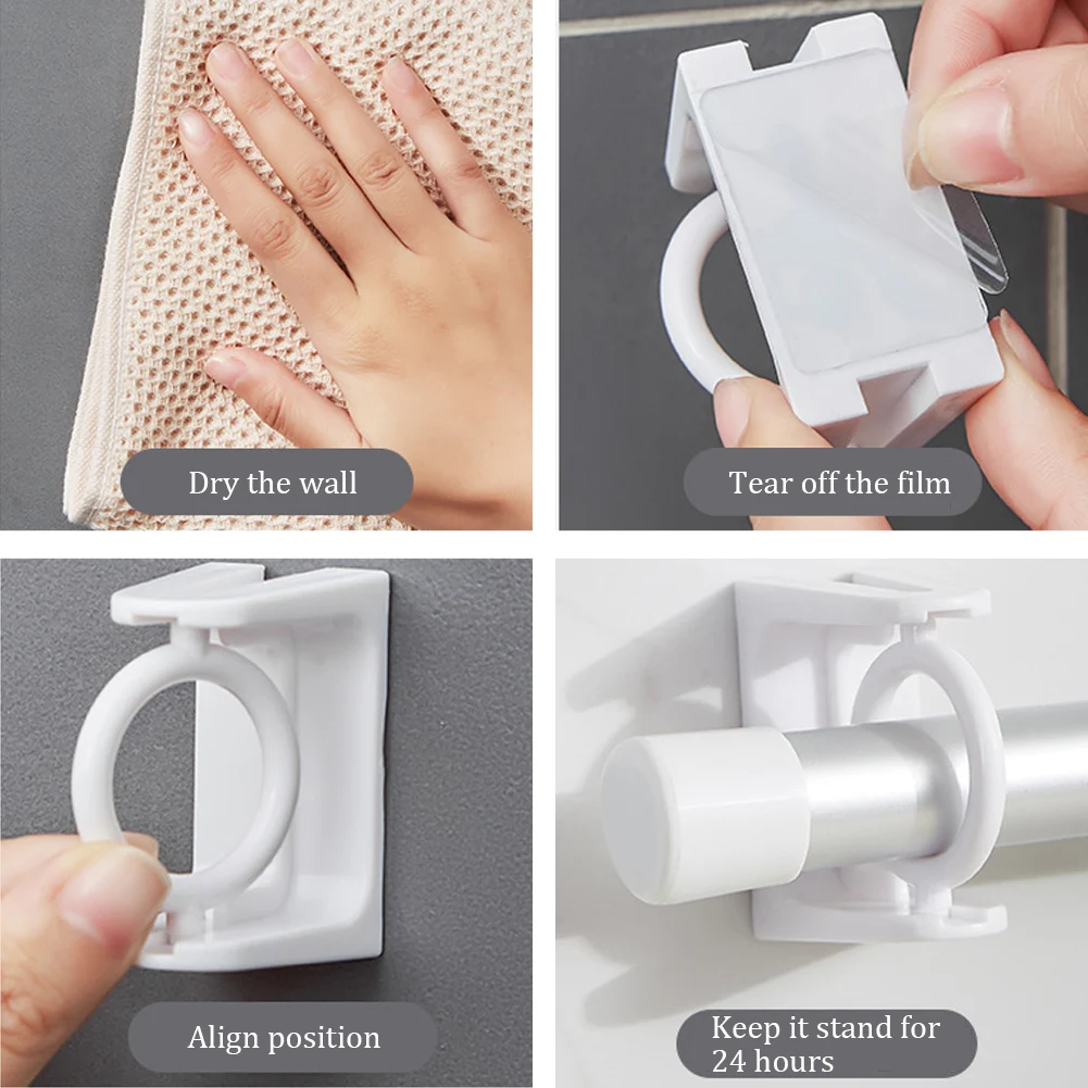 * 2. Простота установки: инструменты не требуются. Благодаря самоклеящейся задней части, кронштейн для штор на палке может быть легко установлен.