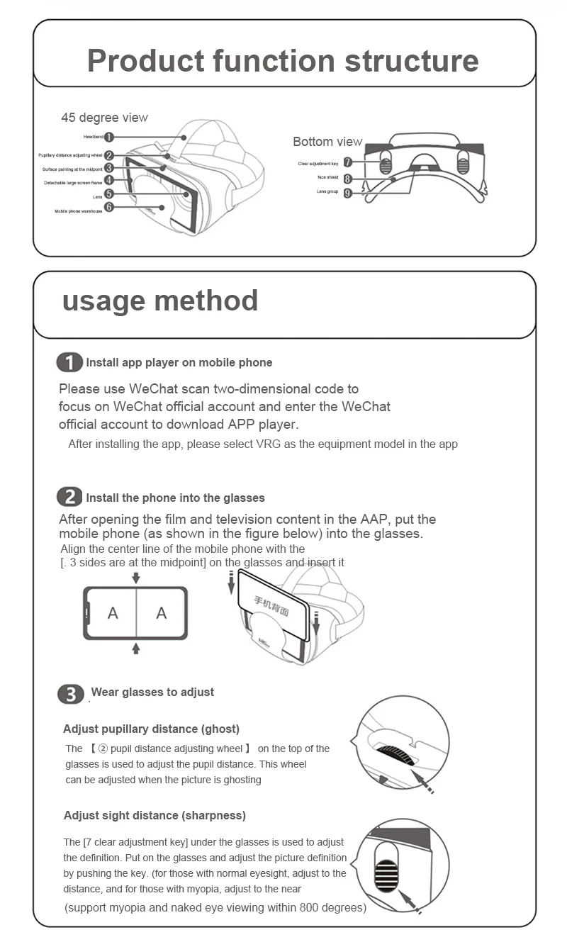 Продукт представляет собой 3d-очки, сочетающие просмотр фильмов и игры в игры, которые могут превратить мобильный телефон в кинотеатр/3D игровой зал.
