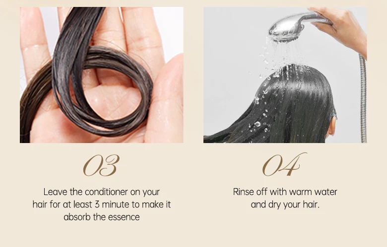 3. Оставьте кондиционер на волосах не менее 3 минут, чтобы он впитал эссенцию;