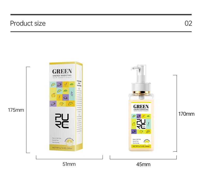После использования густого зеленого энергетического шампуня для волос, волосы могут стать негладкими и кожа головы может чувствовать себя туго из-за его мощной очищающей способности. Кондиционер для волос PURC Green Energy Beading сочетается с шампунем для волос Green Energy Beading.