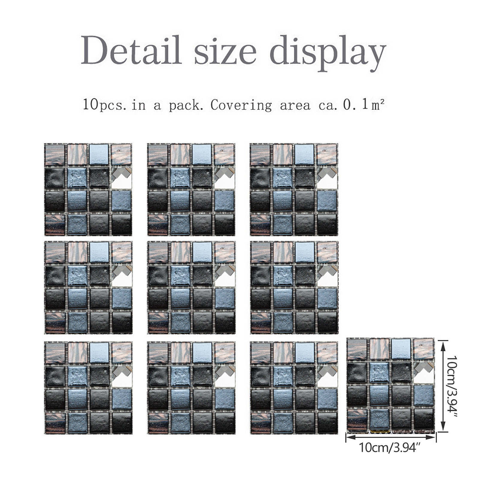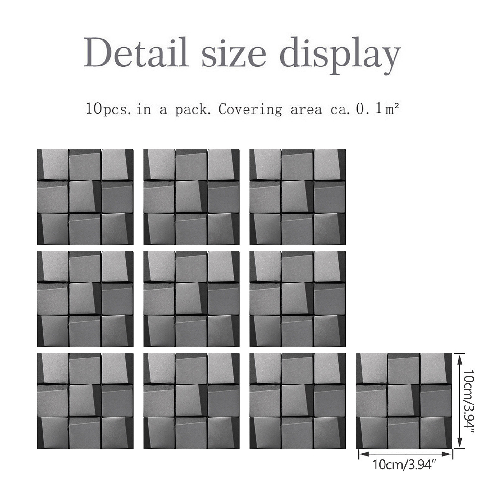Пилинг-крюк и петля на такой же стороне плитки составляет примерно 3,94 дюйма x 3,94 дюйм (ов)