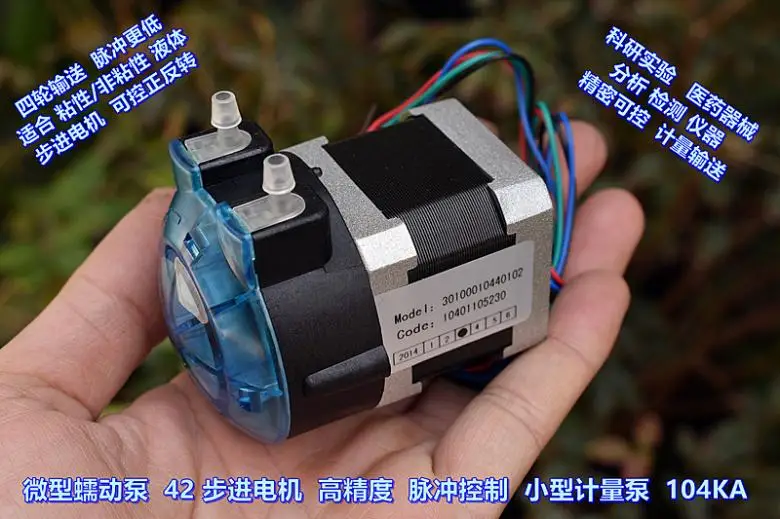Тонкое мастерство микро перистальтического насоса, двигатель принимает двухфазный четырехпроводный 42 шаговый двигатель, (требуется драйвер шагового двигателя для привода), четыре ролика, скорость потока относительно мала, подходит для перекачки вязких/невязких жидкостей. Поскольку шаговый двигатель является двигателем, точно контролируемым импульсным сигналом, можно сказать, что этот насос может очень точно контролировать поток извлекаемой жидкости. Он широко используется во многих областях, таких как обучение измерению и дозированию ....