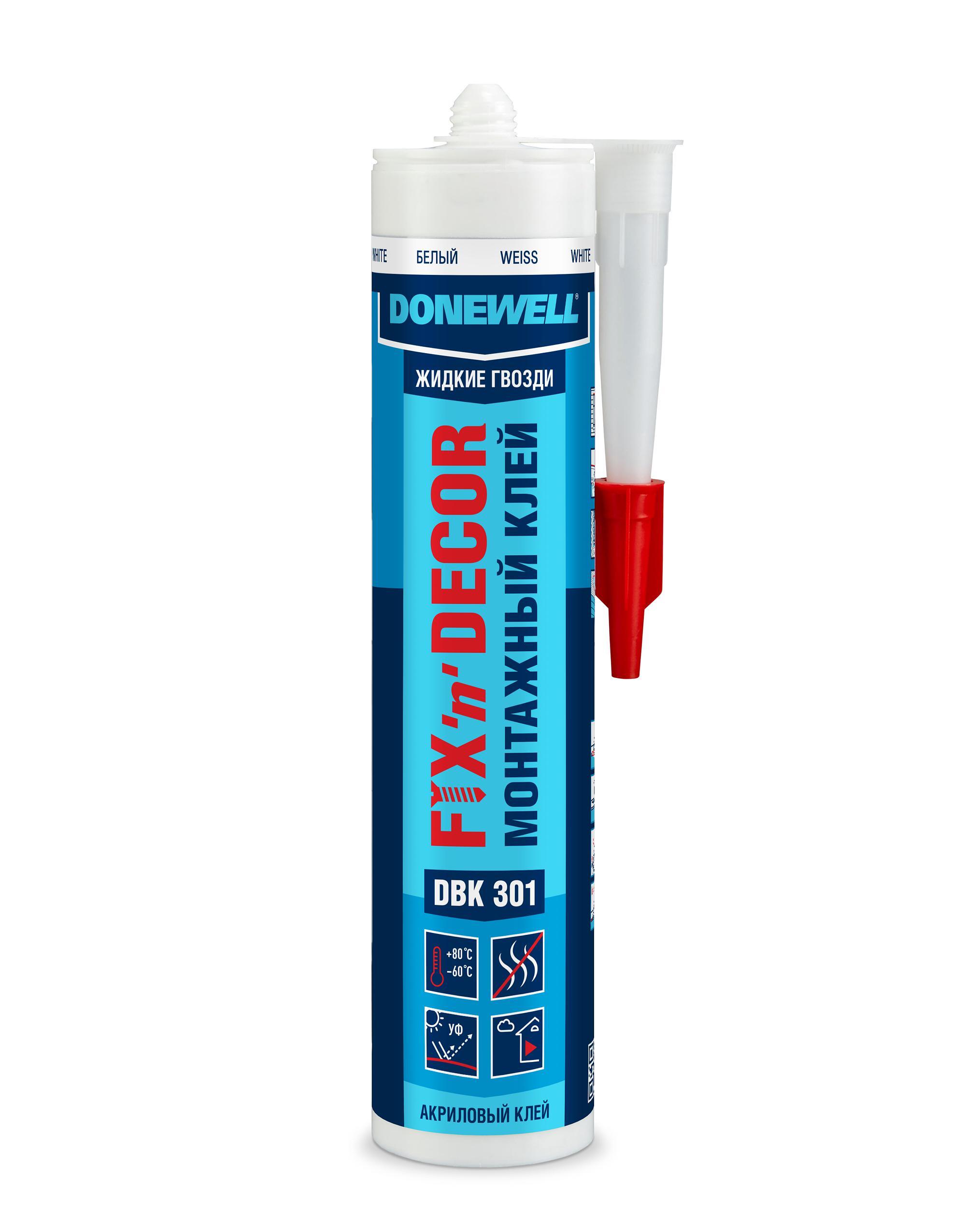 Высококачественный универсальный акриловый клей DONEWELL® FIX‑N‑DECOR специально разработан для приклеивания изделий из древесины, ДСП, ДВП, EPS, XPS и UPVC на бетонные, кирпичные, каменные, металлические, оштукатуренные и деревянные поверхности. Идеально подходит для сборки деревянных конструкций, приклеивания гипсокартона, OSB‑плит, декоративных элементов, подоконников, утеплителей различных видов.