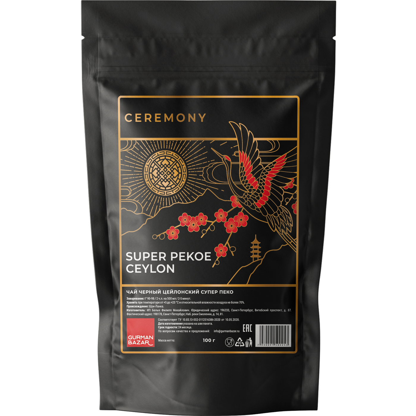Состав: Настоящий Цейлонский Супер Пекое Чай Черный Крупнолистовой Рассыпной (Super Pekoe Ceylon Black Tea, Супер Пеко), Байховый Чайный Напиток