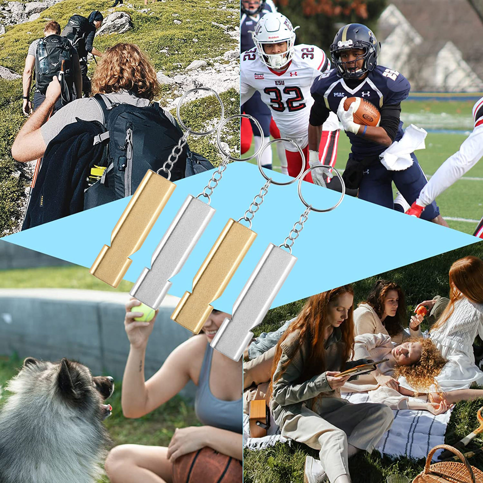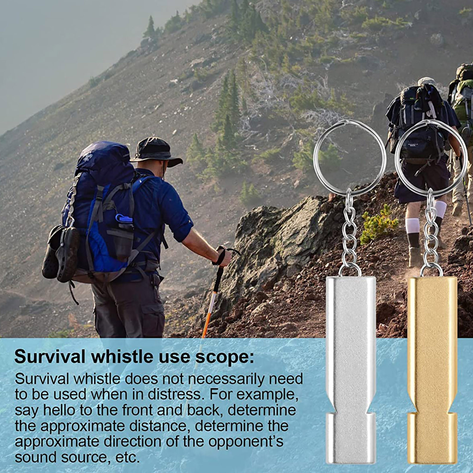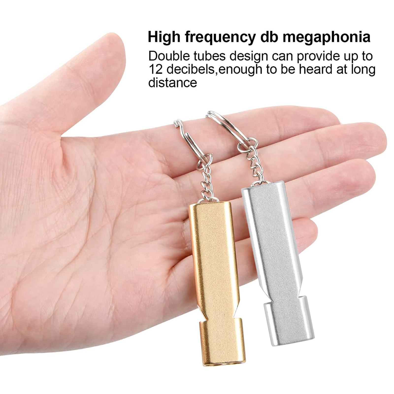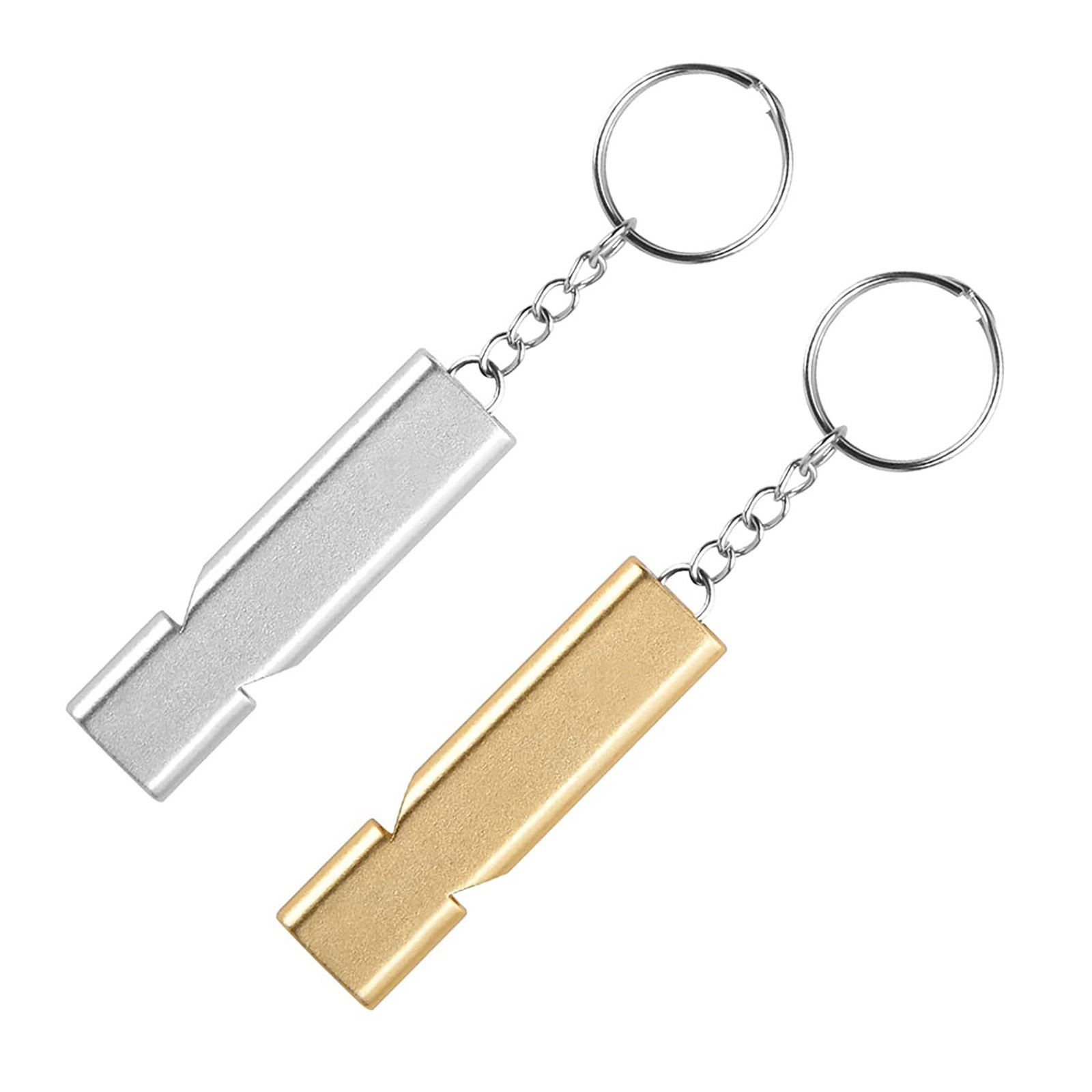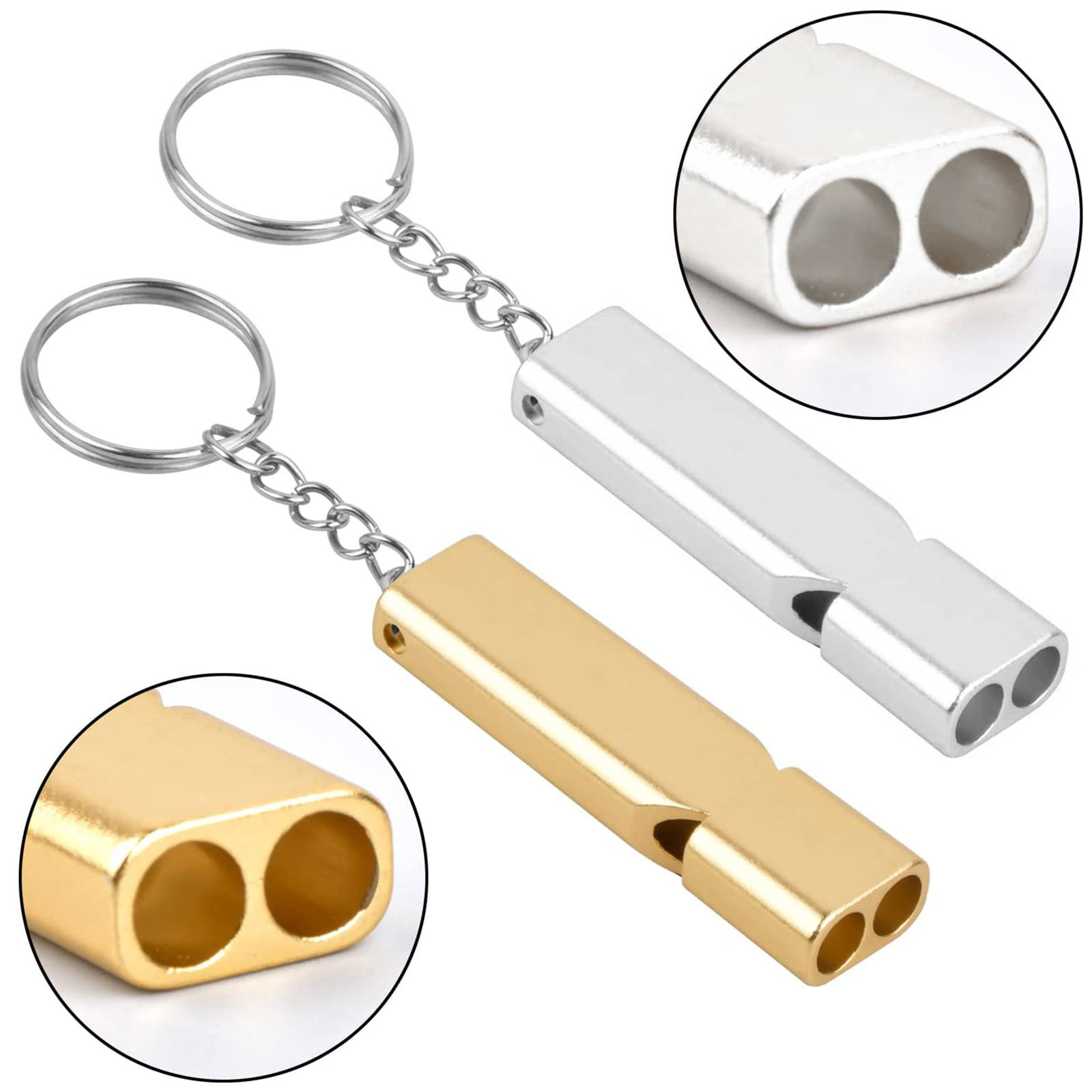 Свисток для выживания с цепочкой для ключей, двухчастотный звуковой свисток из алюминиевого сплава для выживания, алюминиевый сигнальный свисток, 2 шт.