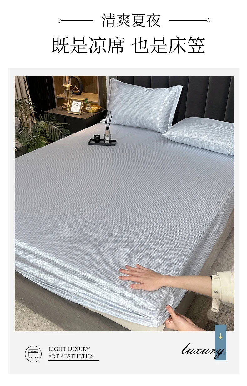 Роскошный ледяной шелк, ткань, эластичный лист, Летние Твердые постельные принадлежности, матрас, протектор, одиночная королева, кровать, простыня, наволочка, набор