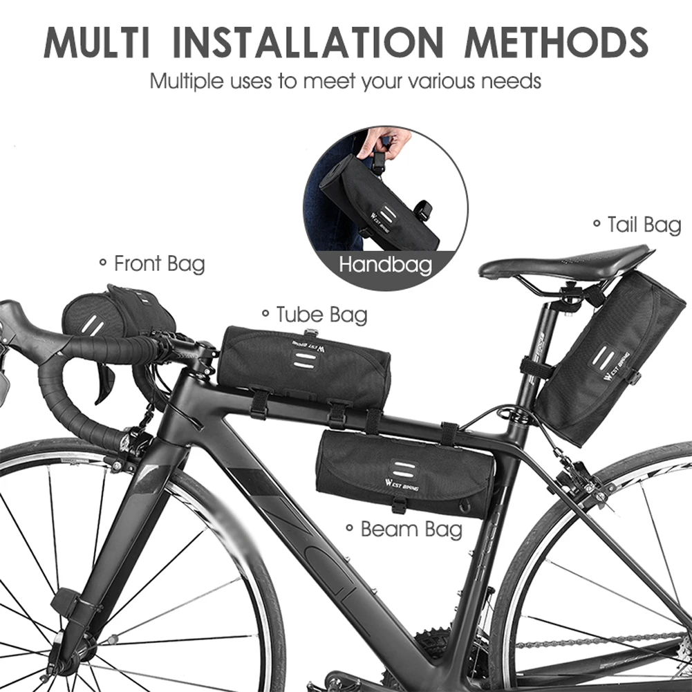 Несколько способов установки легко установить в различных местах, чтобы удовлетворить ваши различные потребности, он может быть использован в качестве передней сумки, трубчатой сумки, хвостовой сумки, сумки на руль и балки вашего велосипеда.