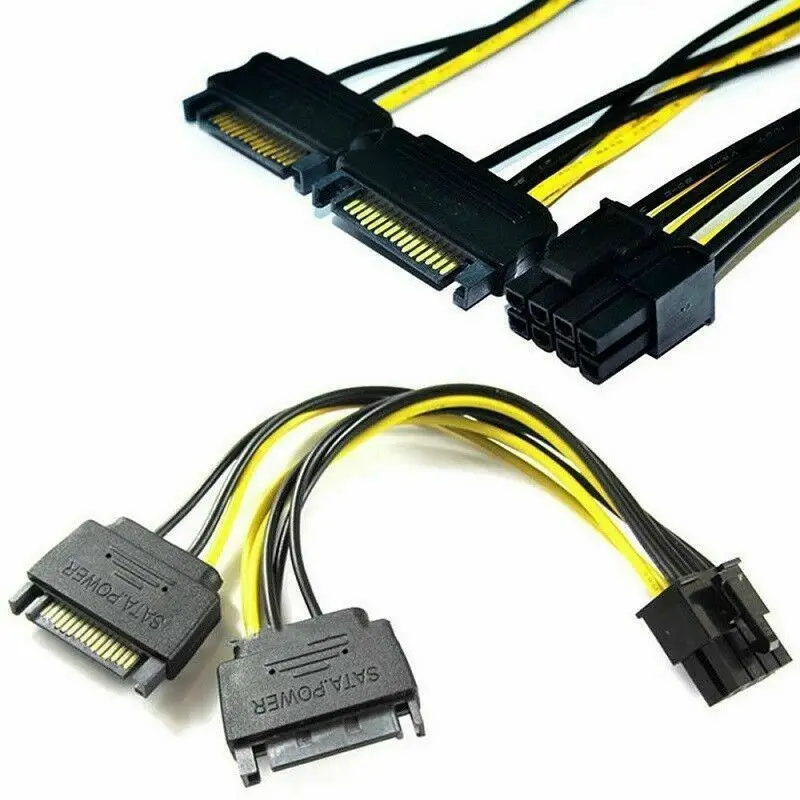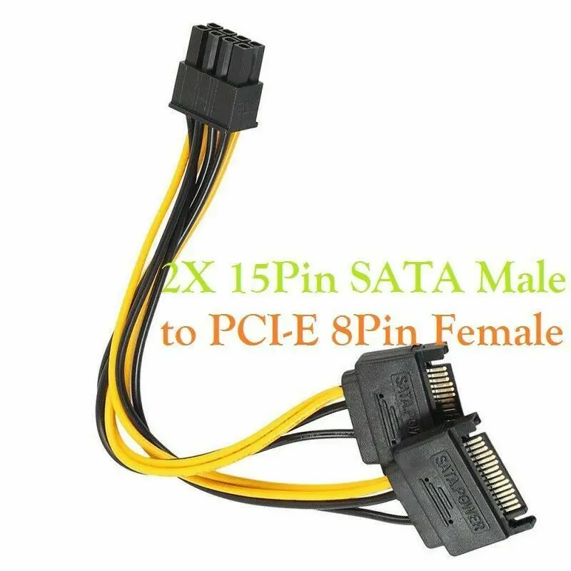 * Это двойной 15pin SATA папа для PCIe 8Pin Мужской кабель питания для видеокарты.