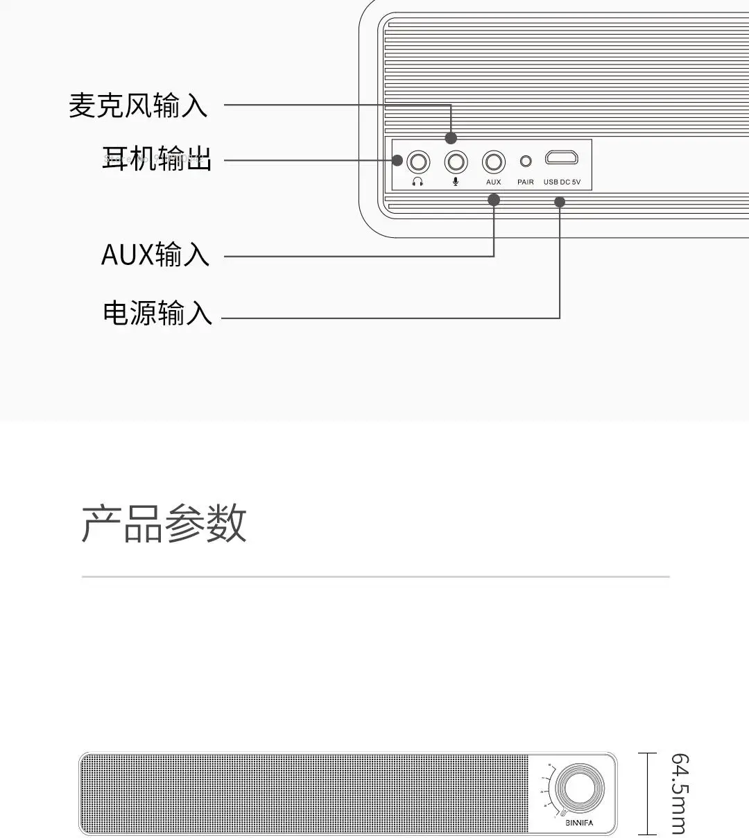 Вход режим: Bluetooth, 3,5 mmAUX проводной 3,5 мм MIC Микрофон