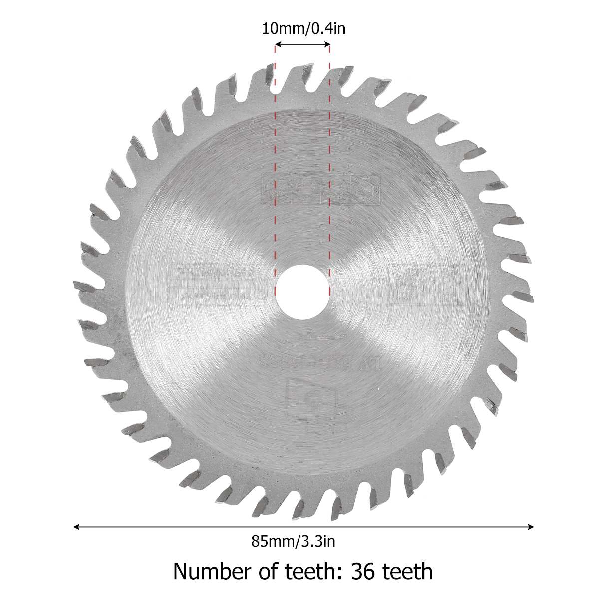 【Size Information】 36 зубы диск круглопильного станка диаметр: 85 мм/3.35in, диаметр отверстия: 10 мм/0,39 в такой стране, как. Диаметр 30 зубчатой циркулярной пилы: 115 мм/4,53 дюйма, диаметр отверстия: 22 мм/0,87 дюйма. Перед покупкой убедитесь в размере.