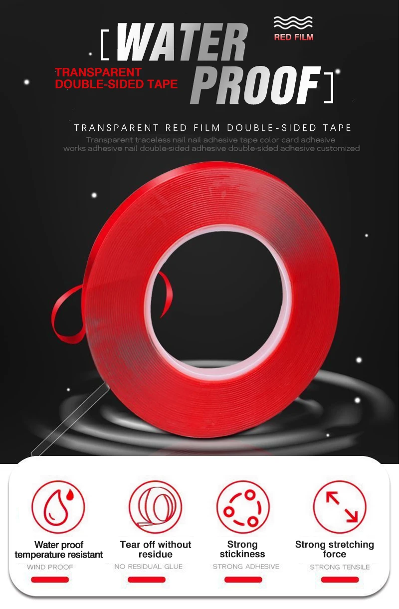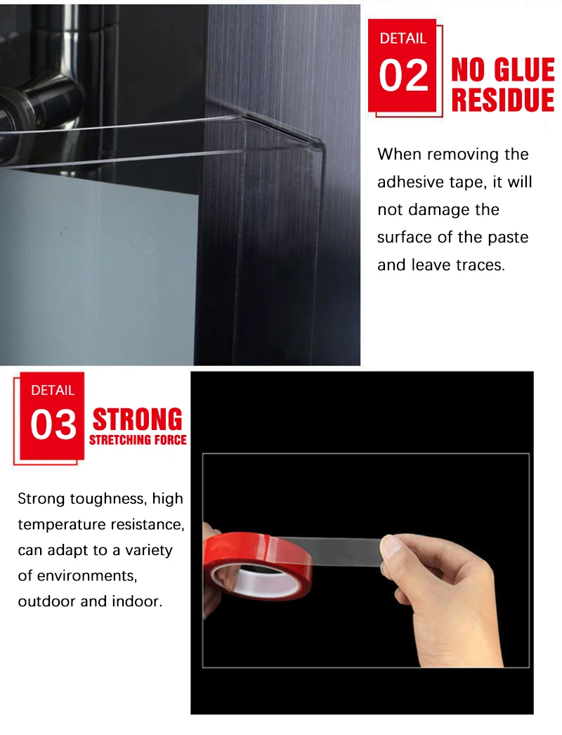 【Высокая прозрачность 】Акриловый клейкий материал Двусторонняя Монтажная лента, кристально чистая, не влияет на внешний вид, особенно подходит для украшения стекла, дизайн защищены красная подложка помогает вам легко очистить, удобно для нанесения ленты.