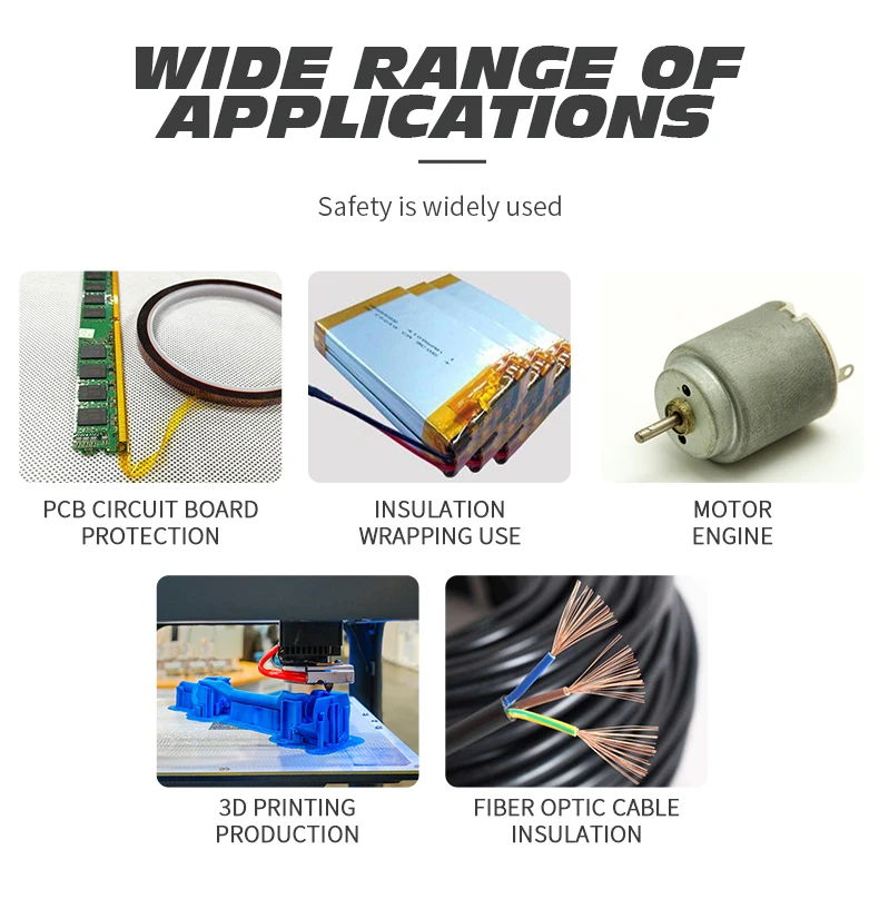 【Широкое применение 】эта лента для теплового пресса может быть применена в различных отраслях промышленности, таких как трансформатор, двигатель, катушка, волоконно-оптический кабель, конденсатор, Автомобильный датчик и коллекторы, микроэлектроника, изоляционные печатные платы, 3D-печать, полупроводниковое производство, пайка, травление, отжимание тепла, другие электронные продукты и т. д.