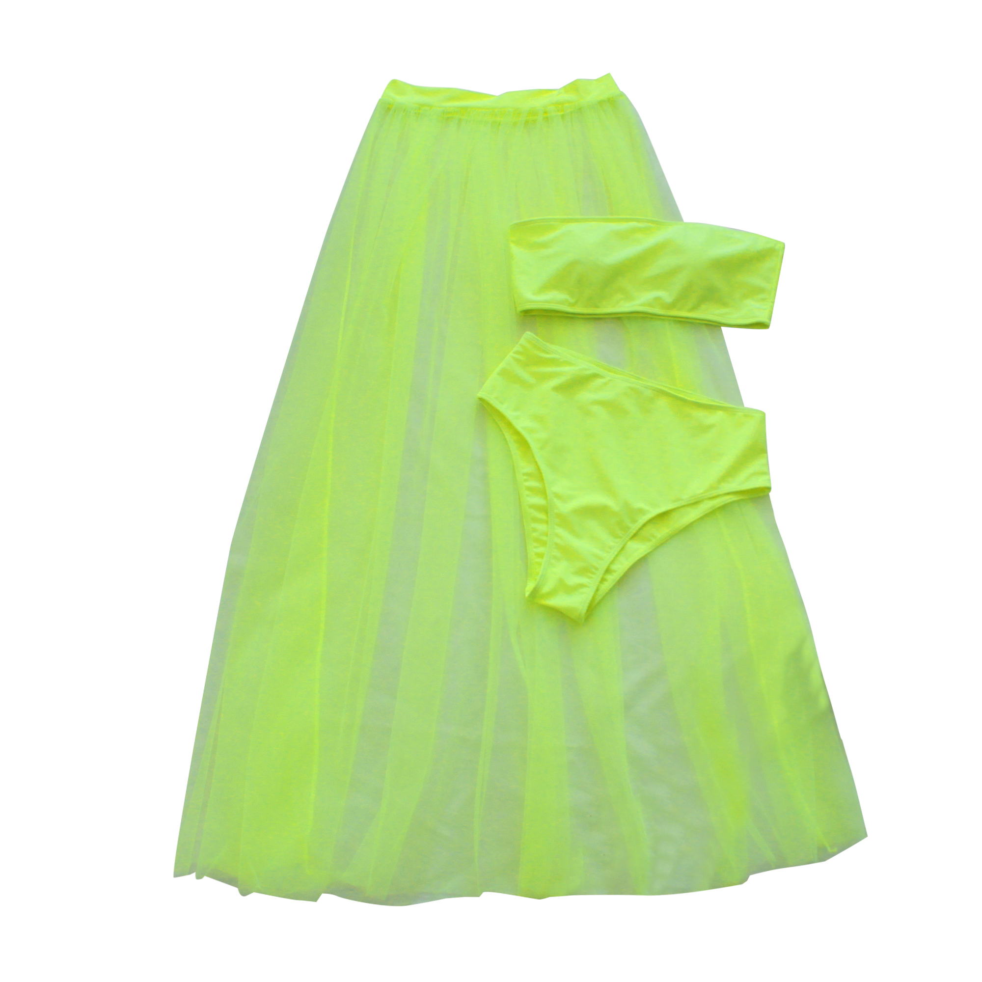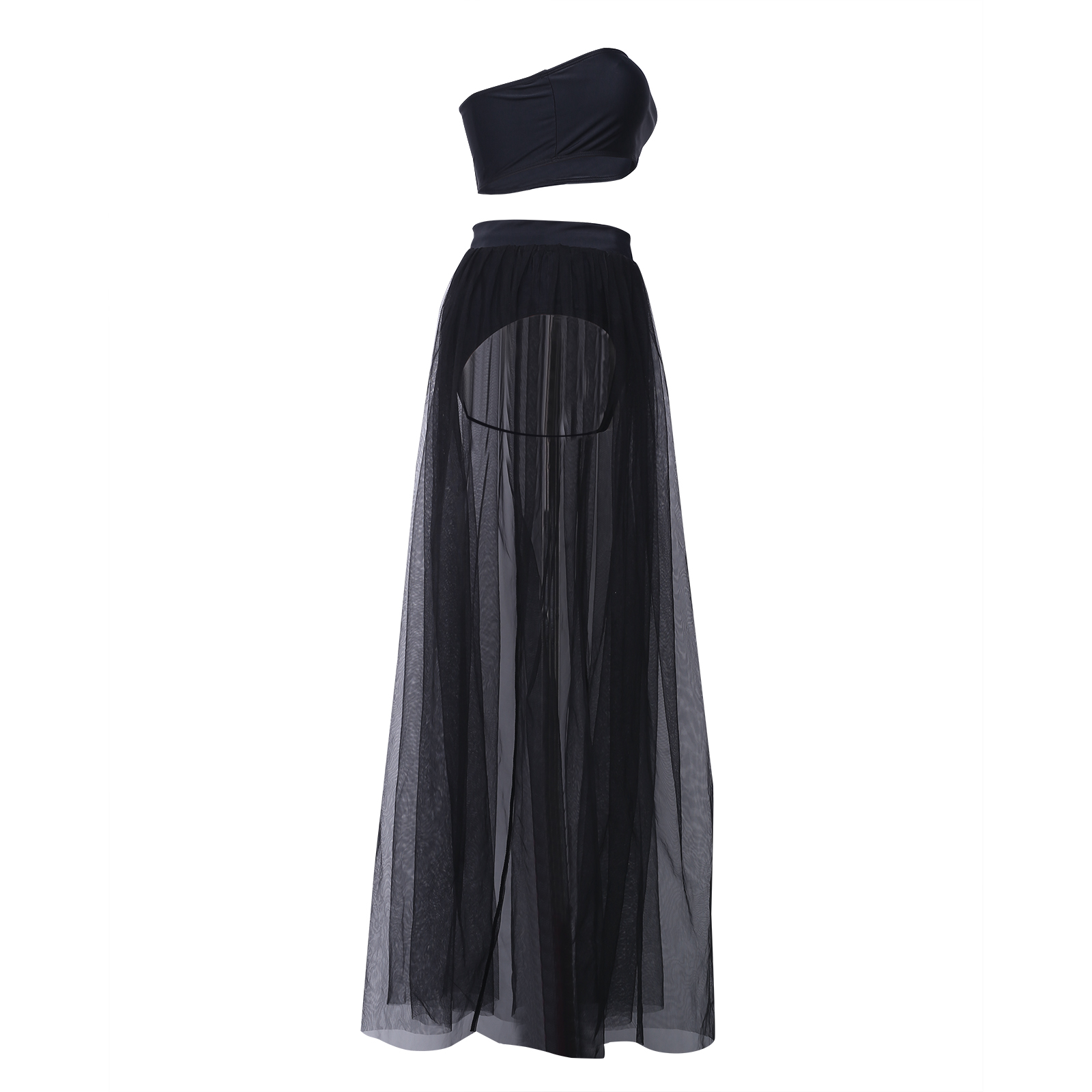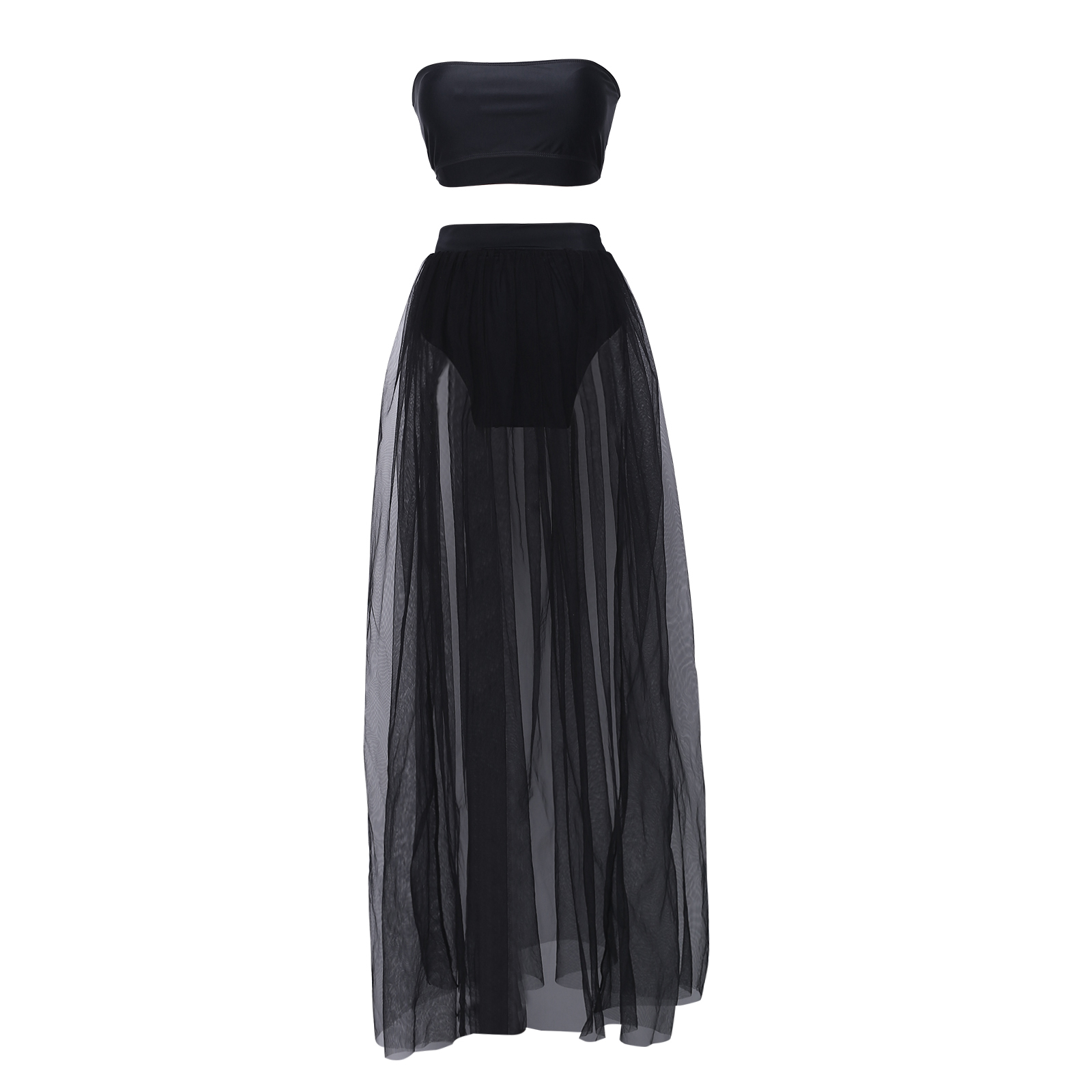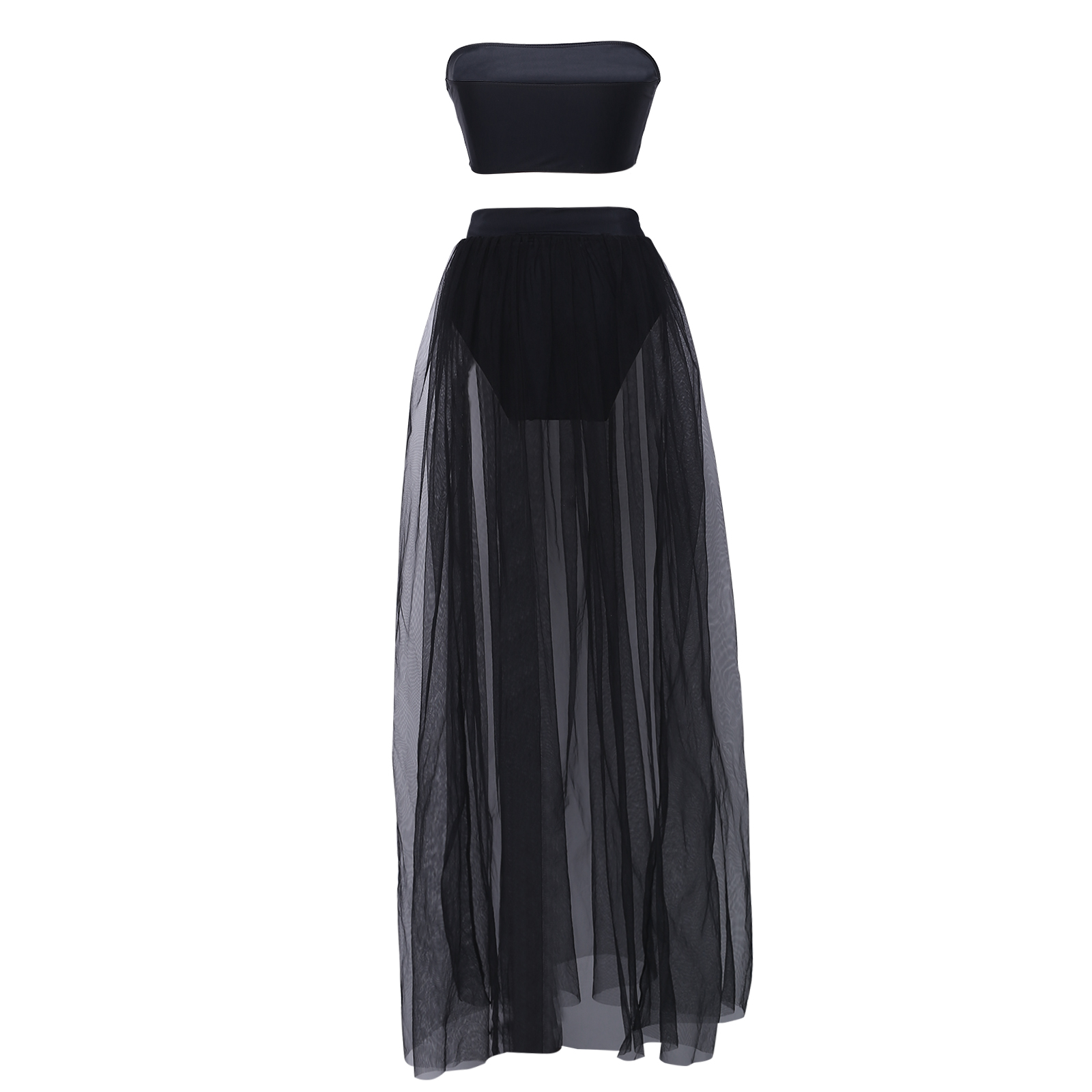 Женские сексуальные наборы купальников, Топы без бретелек бандо + плавки + сетчатая юбка в складку