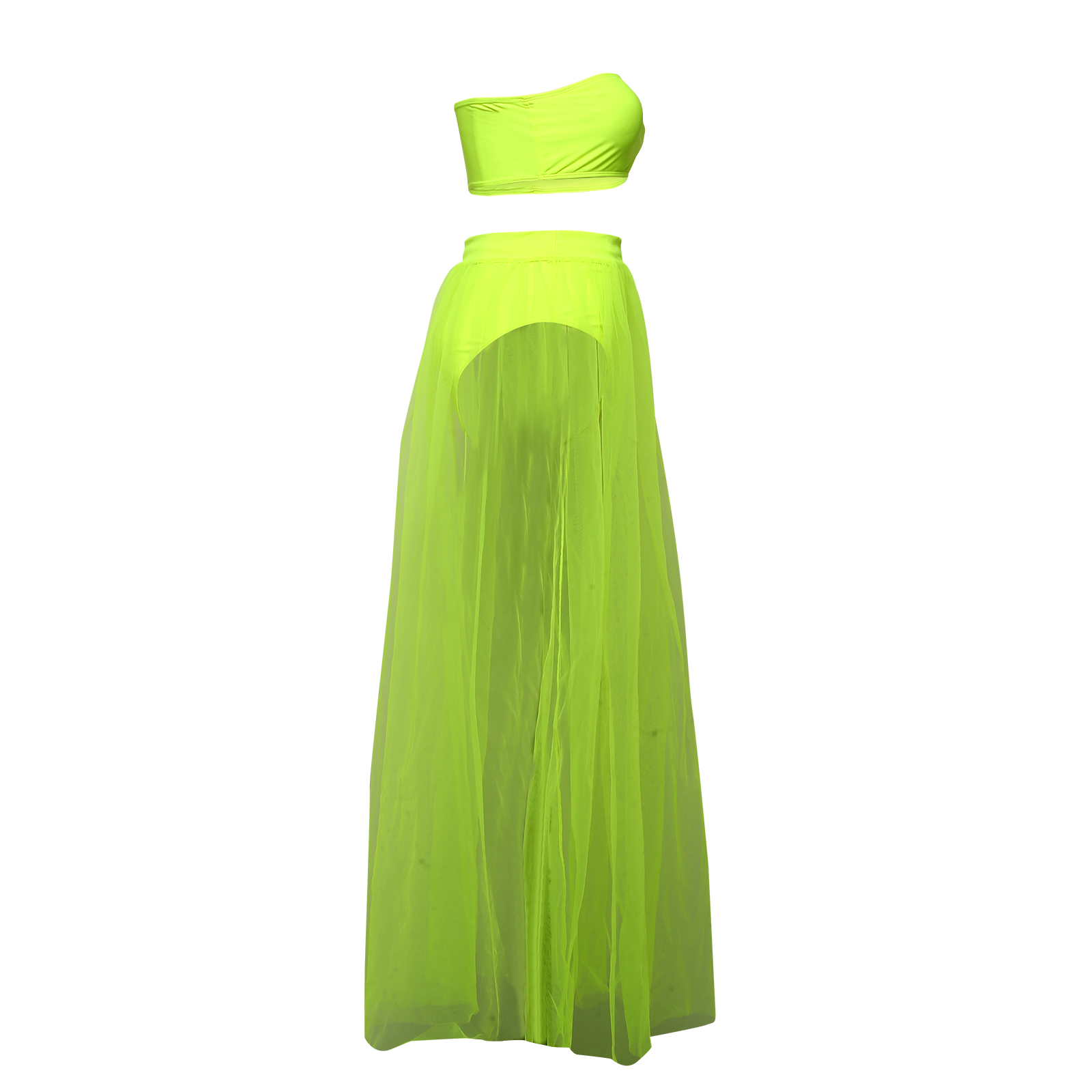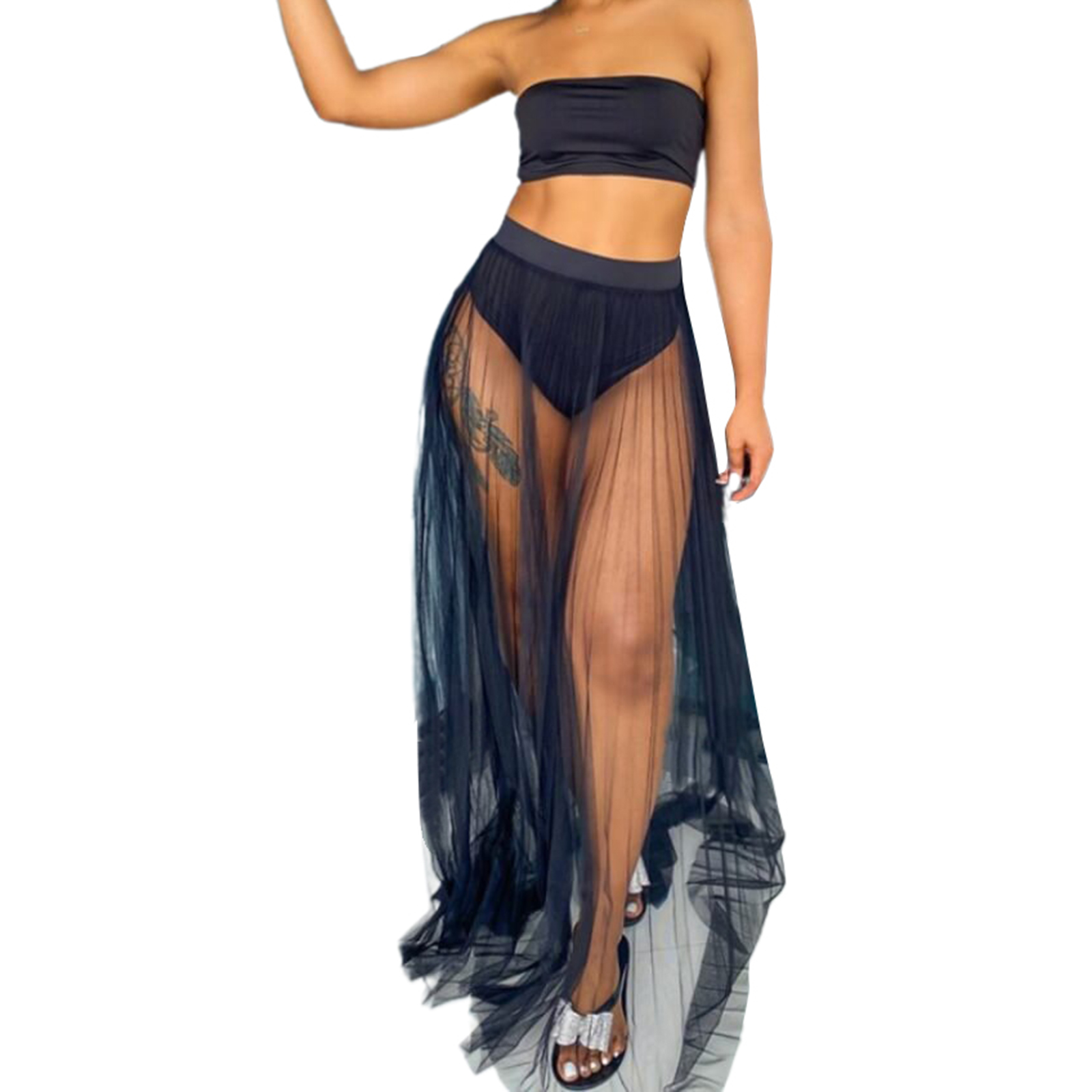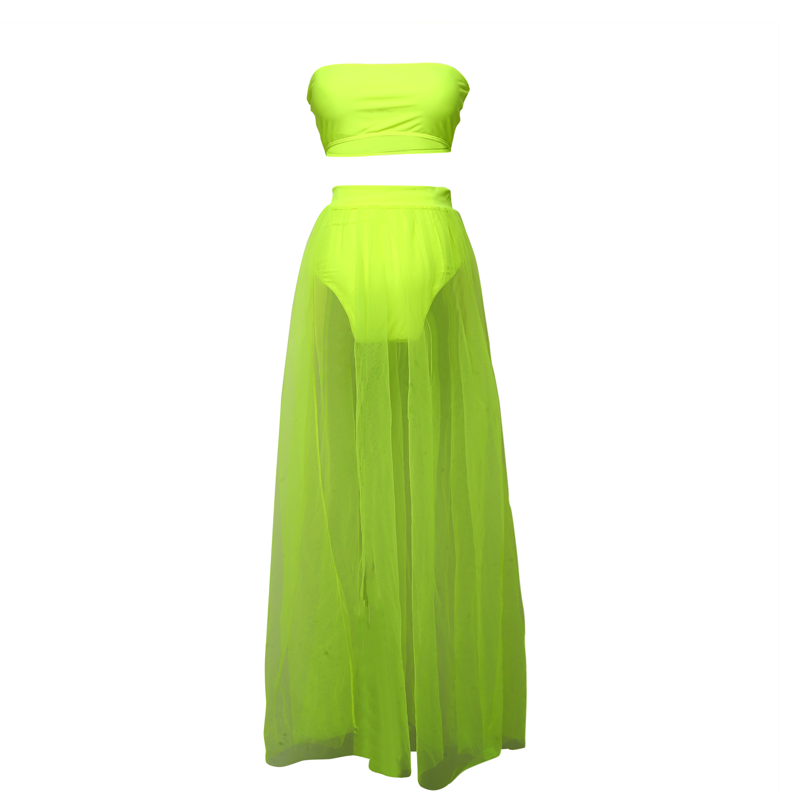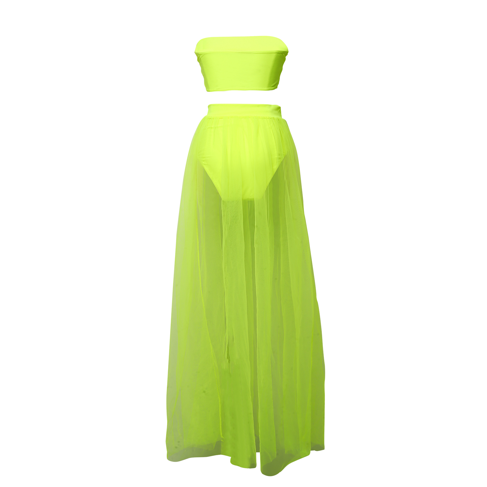 Женские сексуальные наборы купальников, Топы без бретелек бандо + плавки + сетчатая юбка в складку