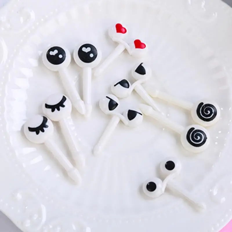 10 шт./партия Мини глаз фрукты вилка многоразовая пластиковая фруктовая вилка декоративные палочки дети Ланч бенто коробка аксессуары