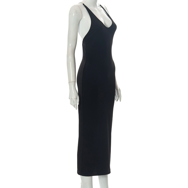Шикарные 2022 модные эластичные платья для женщин, с открытой спиной, для выпускного вечера, миди, вечерние, элегантные, с цепочкой, на бретельках, с открытой спиной, облегающее платье, летняя Клубная одежда