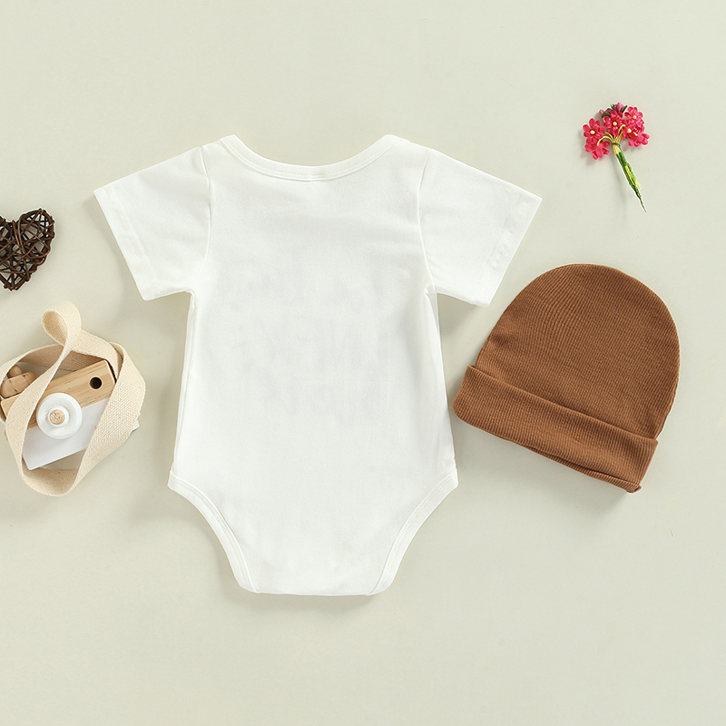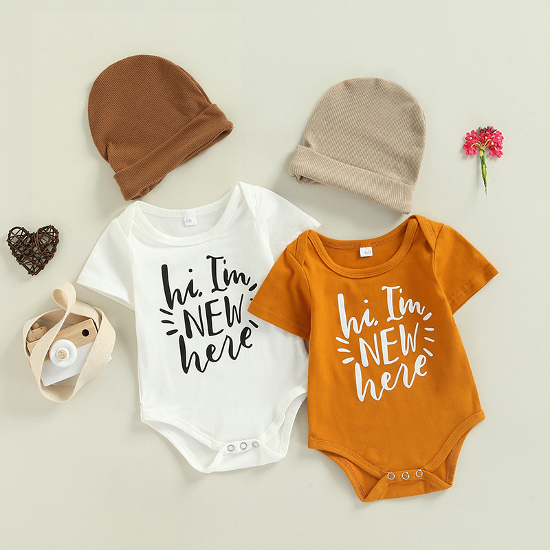 Комбинезон для маленьких мальчиков и девочек с буквенным принтом, боди с круглым вырезом и короткими рукавами, летняя одежда с шапкой